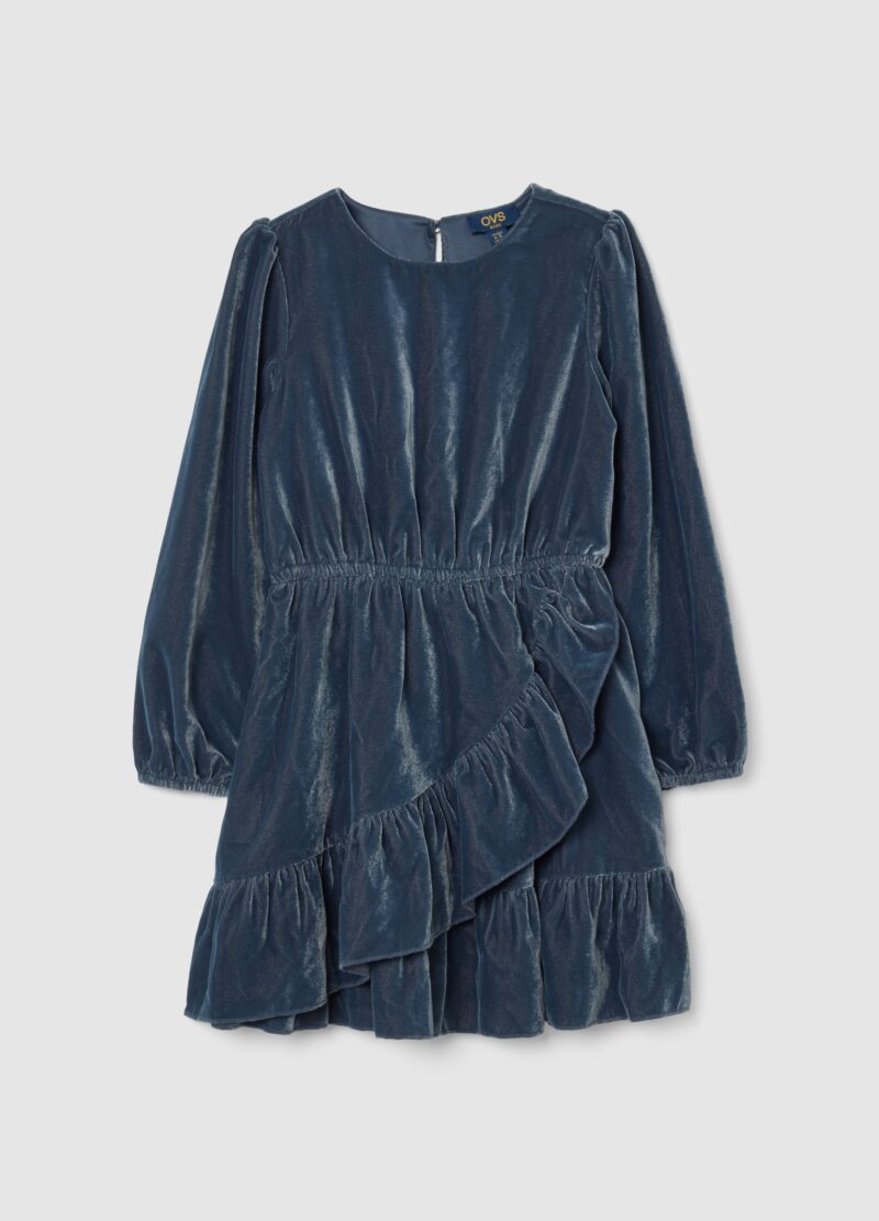 Cette robe bleue de la ligne OVS KIDS est destinée aux filles de 3 à 10 ans. Confectionnée en velours doux, elle offre un toucher velouté sur la peau. Le modèle présente un col rond et des manches longues, parfait pour les journées plus fraîches. Les volants ajoutent une touche d’originalité, ce qui le rend idéal pour les occasions spéciales. Il est doté d’une fermeture boutonnée pour un port confortable et pratique.