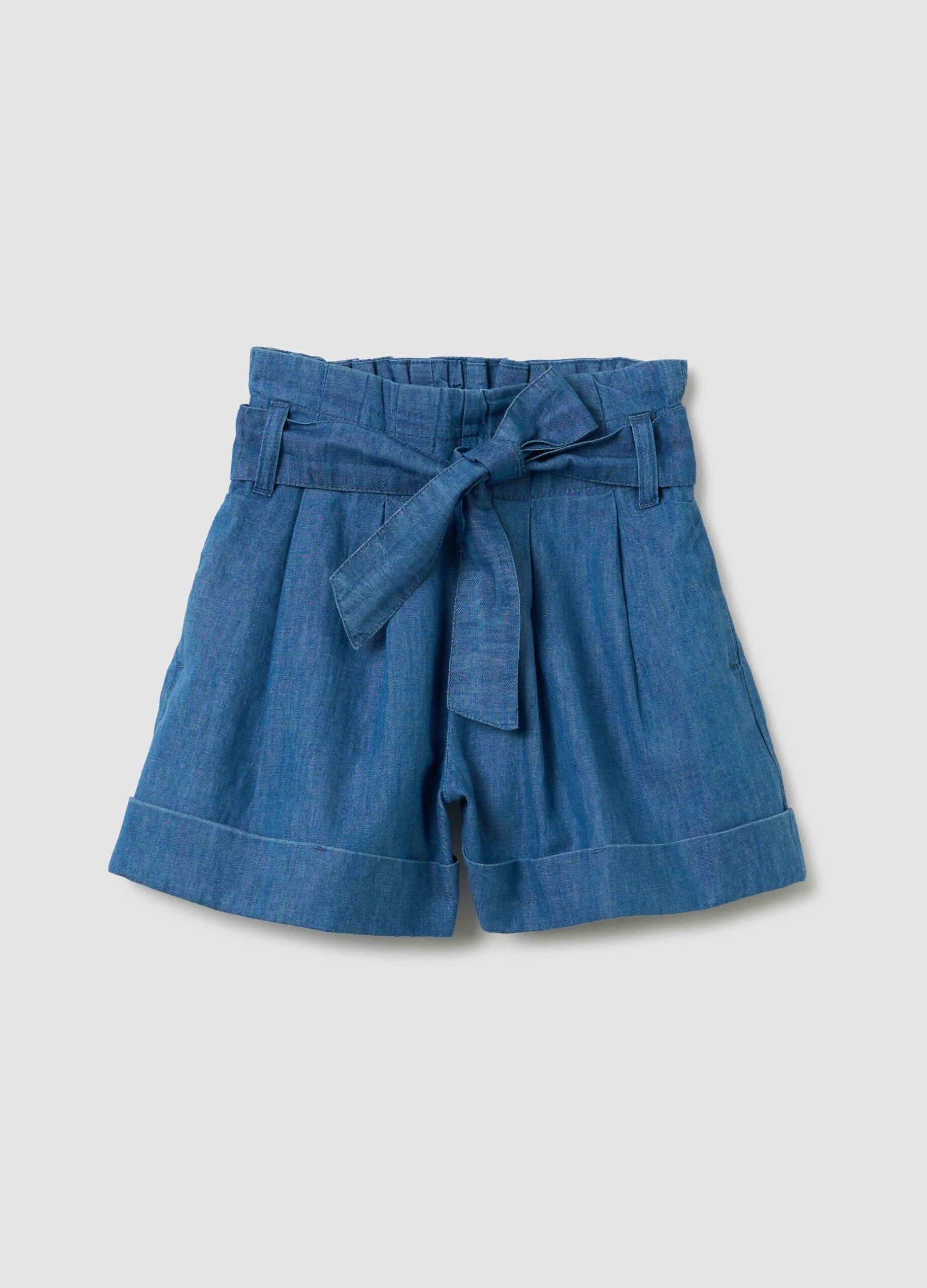 Ces shorts en coton pur bleu pour les filles âgés de 3 à 10 ans de la ligne OVS Kids sont idéaux pour l’été en raison de leur tissu léger. Ils présentent des plis élégants et une ceinture décorative assortie, ajoutant une touche de style au look. Parfait pour créer des tenues fraîches et pratiques, elles s’adaptent facilement à diverses occasions d’été. Un article essentiel dans la garde-robe d’été.