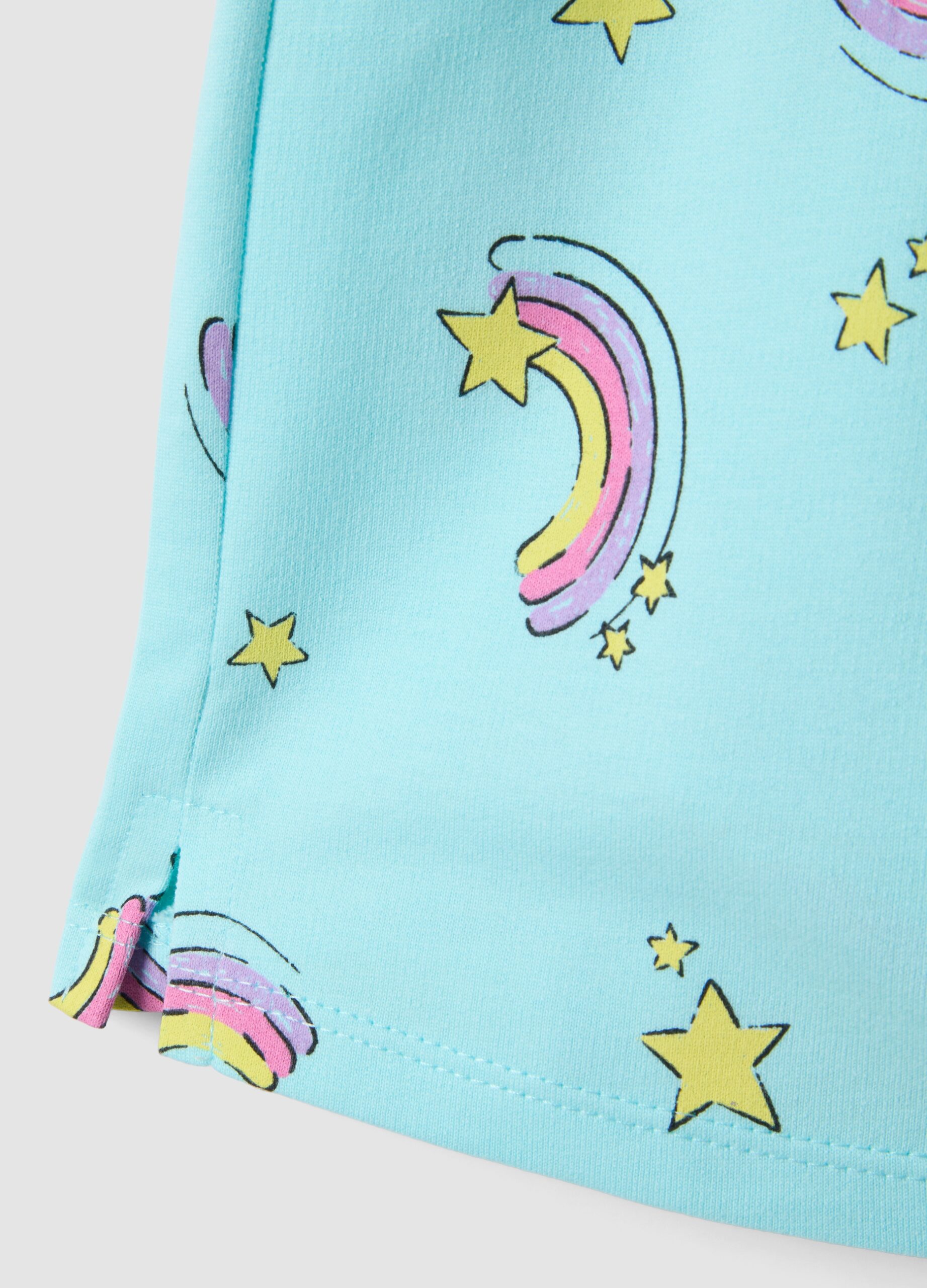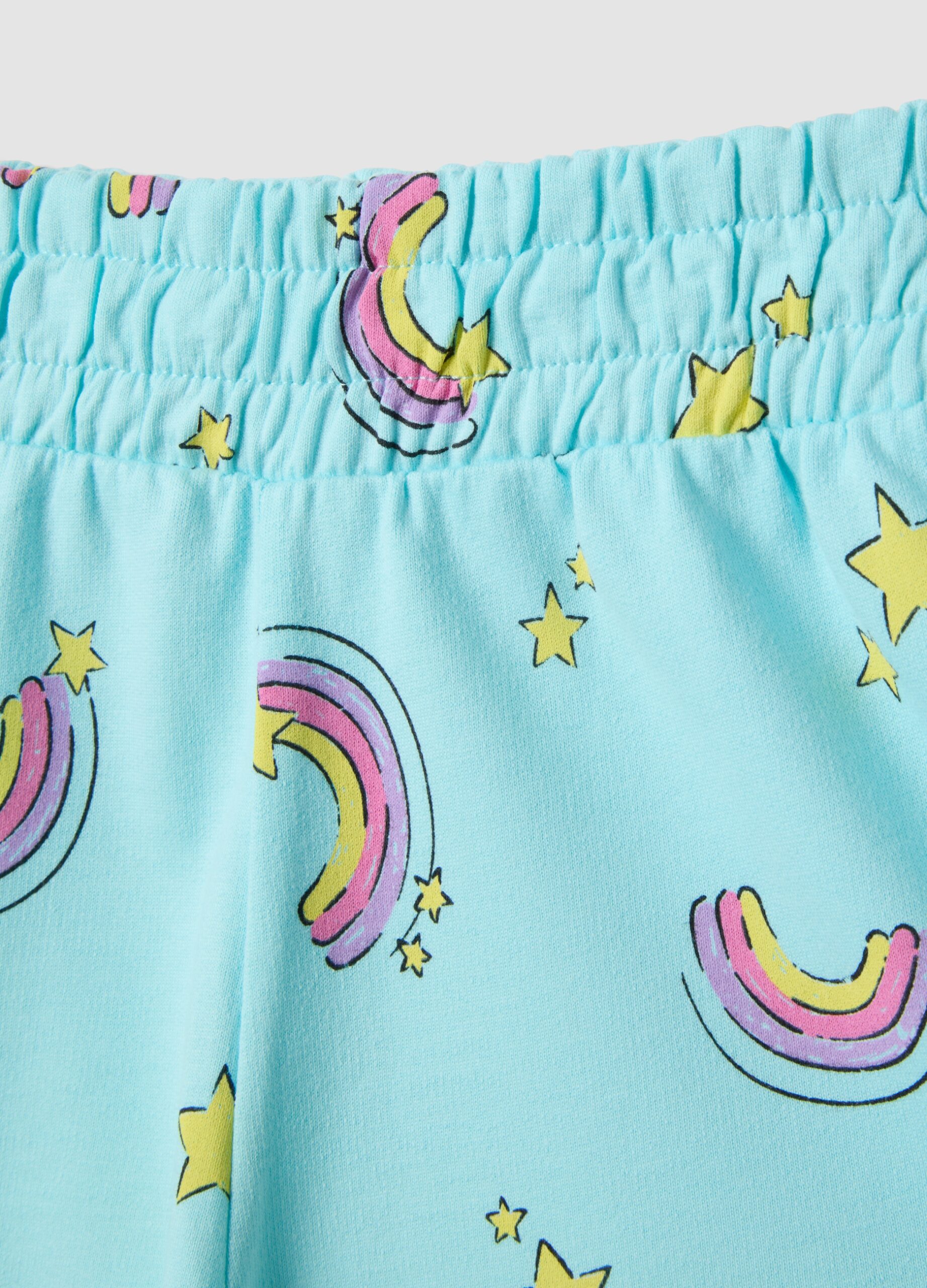Le short bleu ciel OVS, en pur coton, est idéal pour l’été et conçu pour les filles âgées de 3 à 10 ans. Décoré d’arcs-en-ciel et d’étoiles, il offre un confort grâce à la taille élastiquée et à la coupe régulière qui garantissent la liberté de mouvement. Parfait pour les récréations et toutes les aventures estivales.