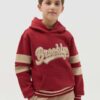 Sweat à capuche en French Terry 100% coton (peluche avec envers non brossé). Poche kangourou. Manches avec empiècement rayé. Patch « Brookling » en bouclette sur la poitrine. Poignets et ourlet côtelés.