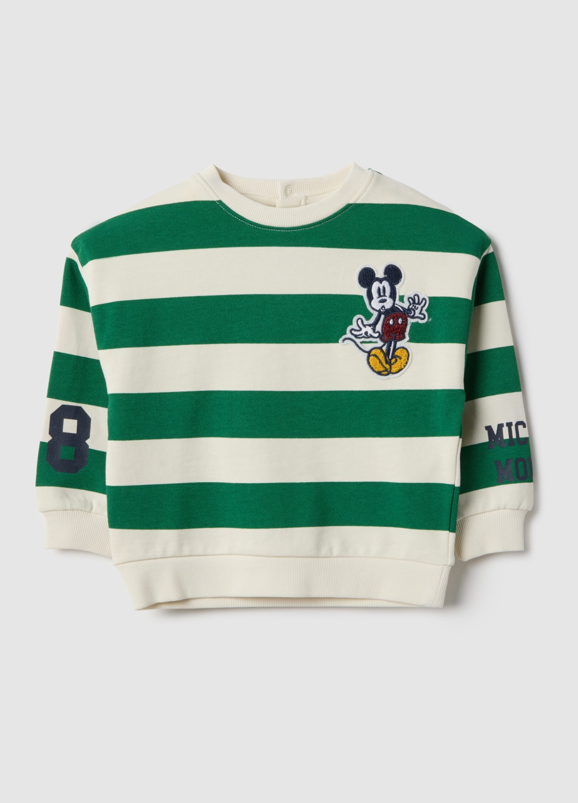 Le sweat à rayures multicolores de la ligne Disney est idéal pour les enfants de 9 à 36 mois. Fabriqué en pur coton, il offre confort et douceur à la peau délicate des plus petits. Il présente une encolure ronde classique et des détails brodés de Mickey Mouse qui ajoutent du plaisir au design. La coupe régulière assure une liberté de mouvement pour les activités quotidiennes.
