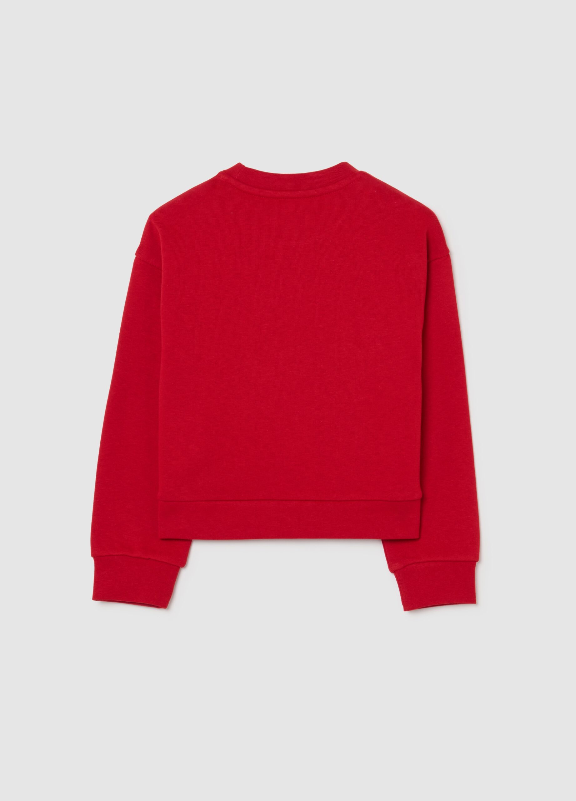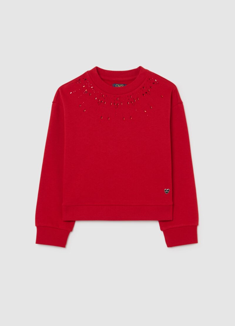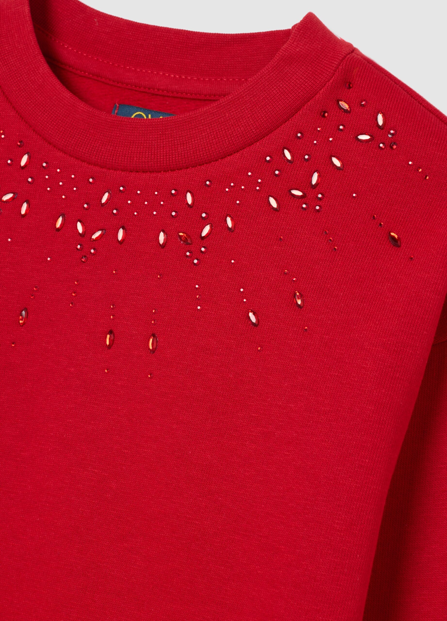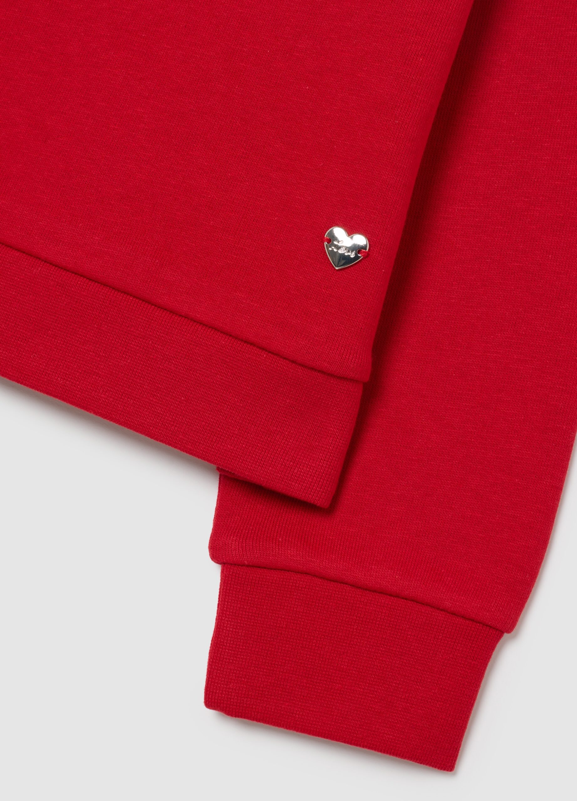 Sweat fille coupe classique rouge en coton mélangé avec col décoré