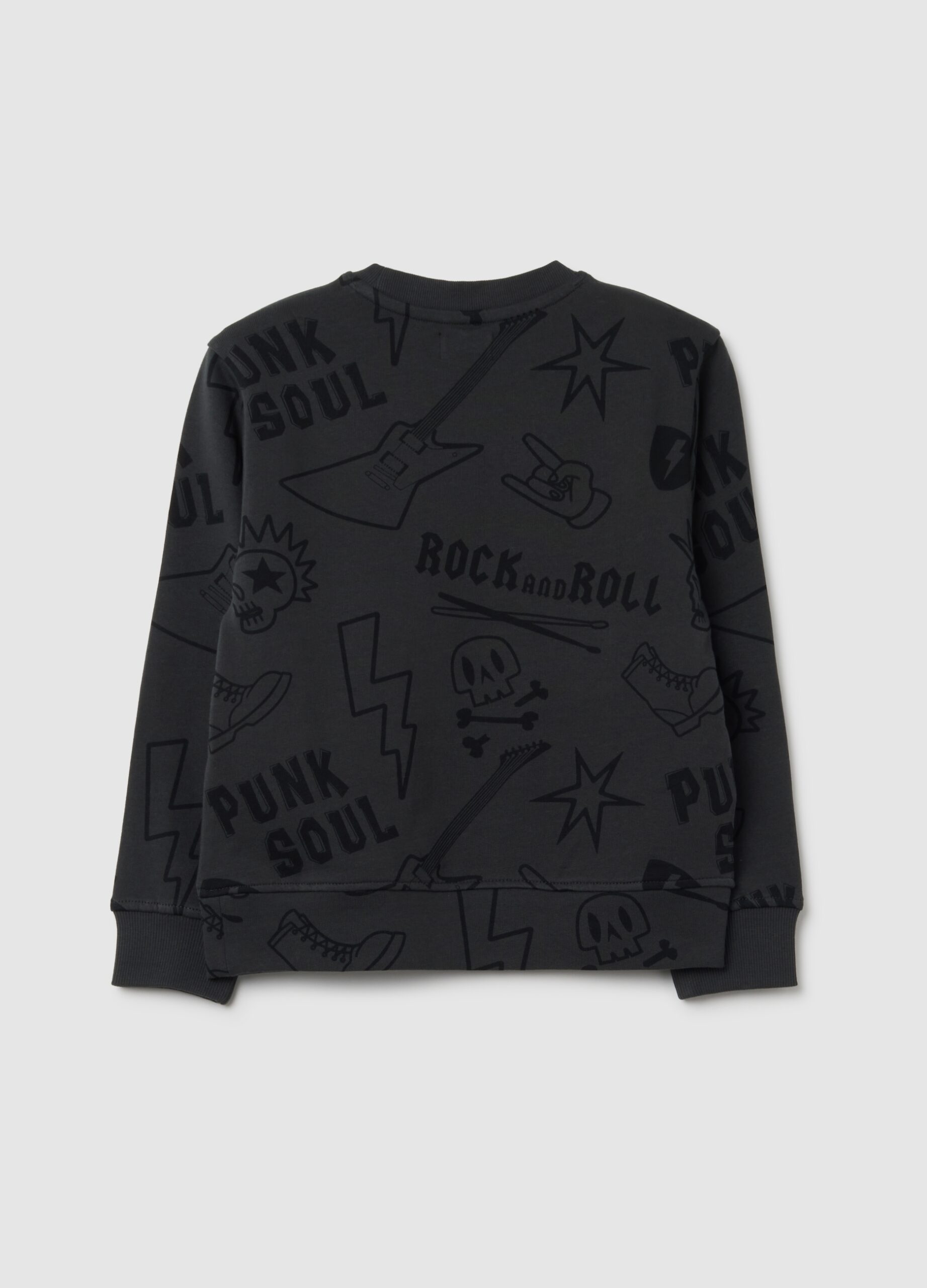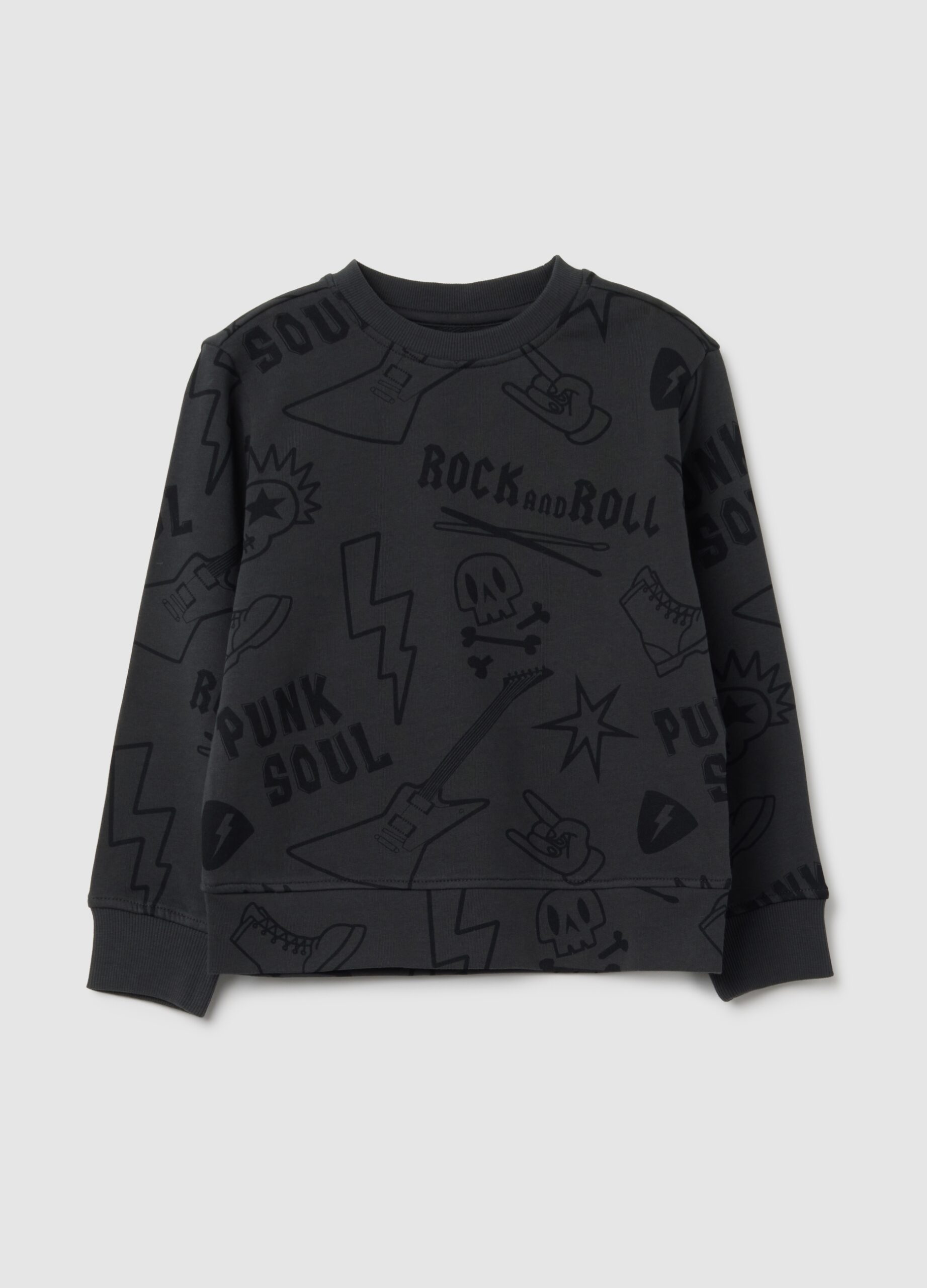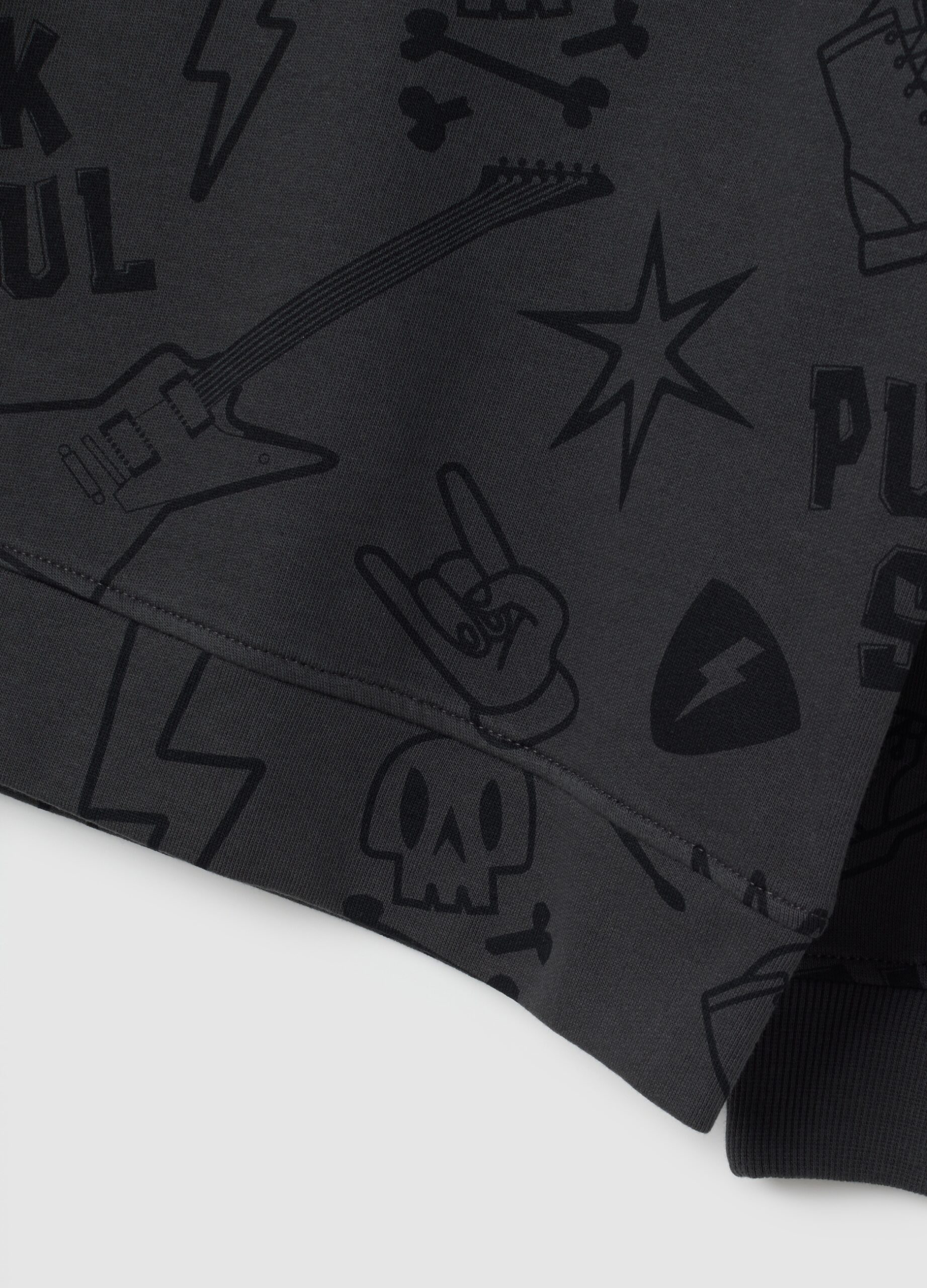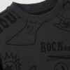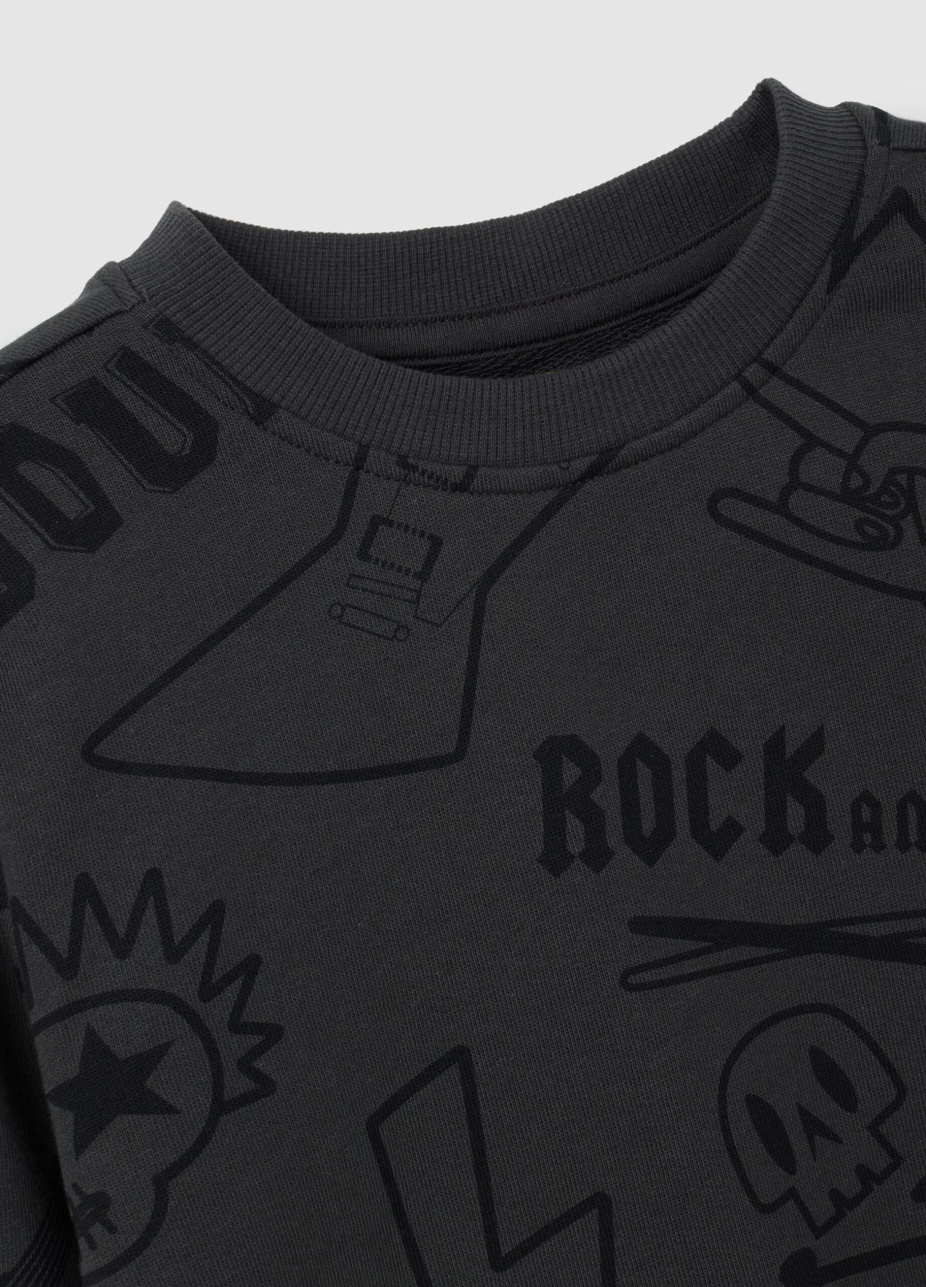 Ce sweat-shirt noir de la ligne OVS Kids est en coton pur, parfait pour les enfants âgés de 3 à 10 ans. Il présente un design à thème rock and roll avec un ajustement surdimensionné, sans capuche et un cou rond, idéal pour un look décontracté.