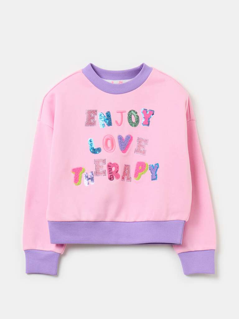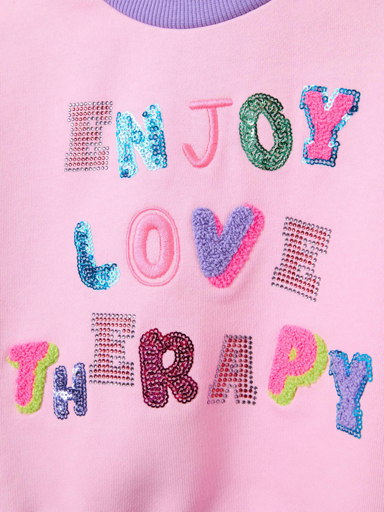Sweat-shirt coupe boxy en mélange de coton. Col rond. Application du lettrage Love Therapy effet bouclé, avec strass et paillettes. Détails brodés. Finitions contrastées.