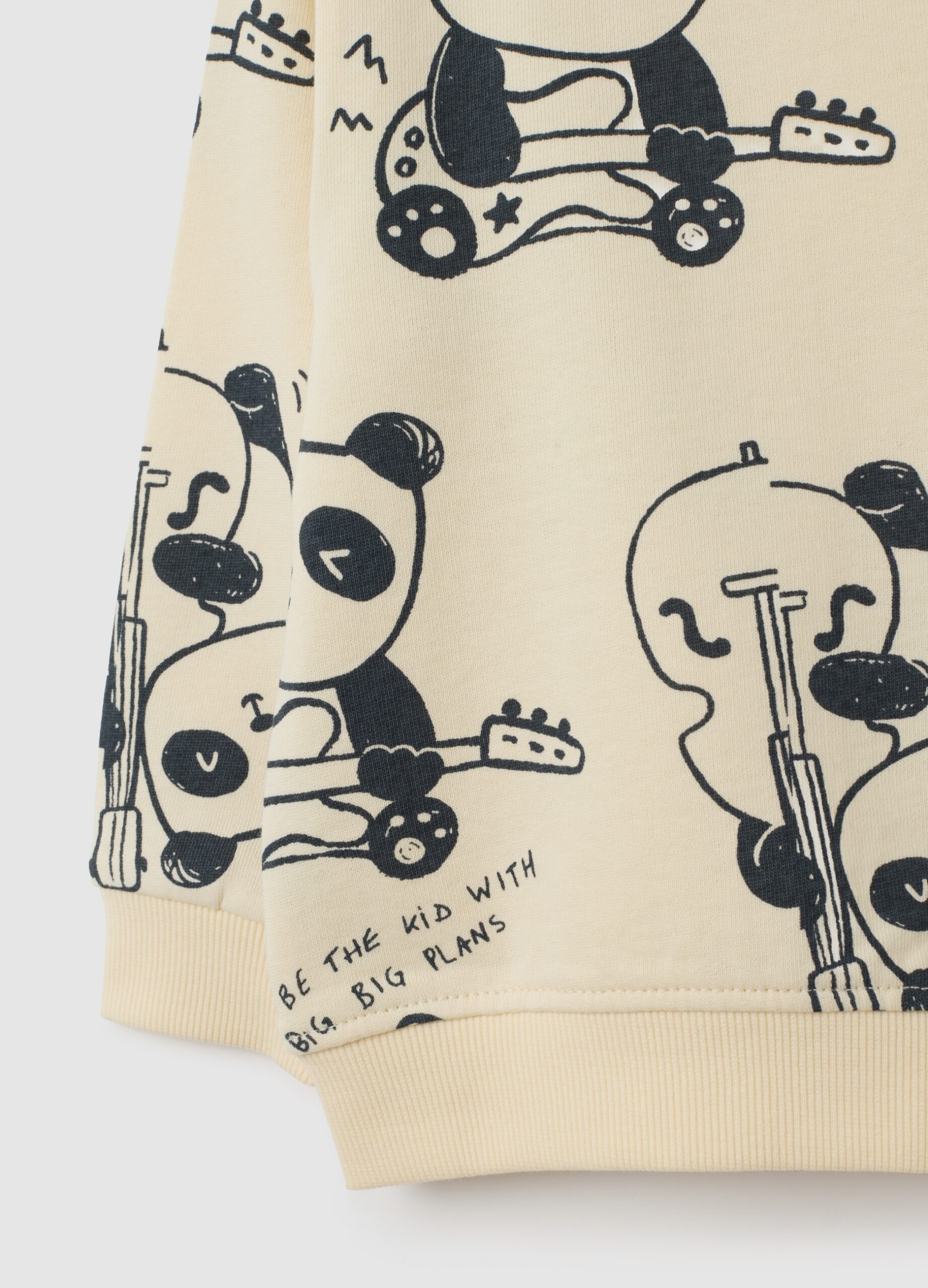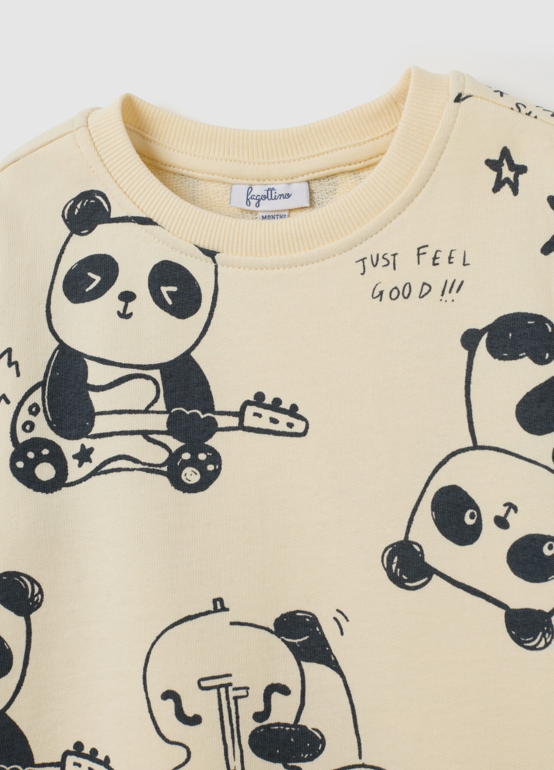 Le sweat-shirt bébé en coton beige pur, adapté aux 9 à 36 mois, à partir de la ligne Fagottino, assure la douceur et la chaleur pendant les saisons plus fraîches. Le design présente un joli graphique de panda, ajoutant une touche ludique au vêtement. Avec un cou rond et des manches longues, il est facile à porter et permet la liberté de mouvement pendant le jeu.