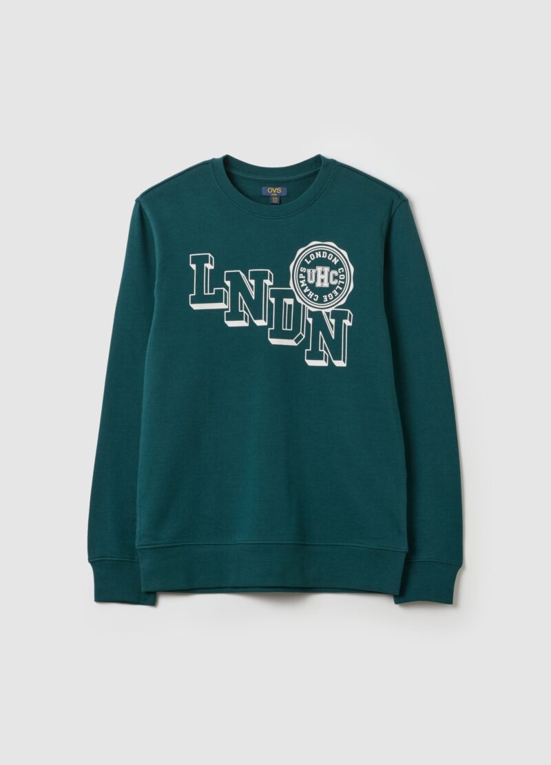 Sweat-shirt en molleton 100% coton (envers non brossé). Col rond. Imprimé emblème du collège et »LNDN » sur la poitrine. Bords côtelés.