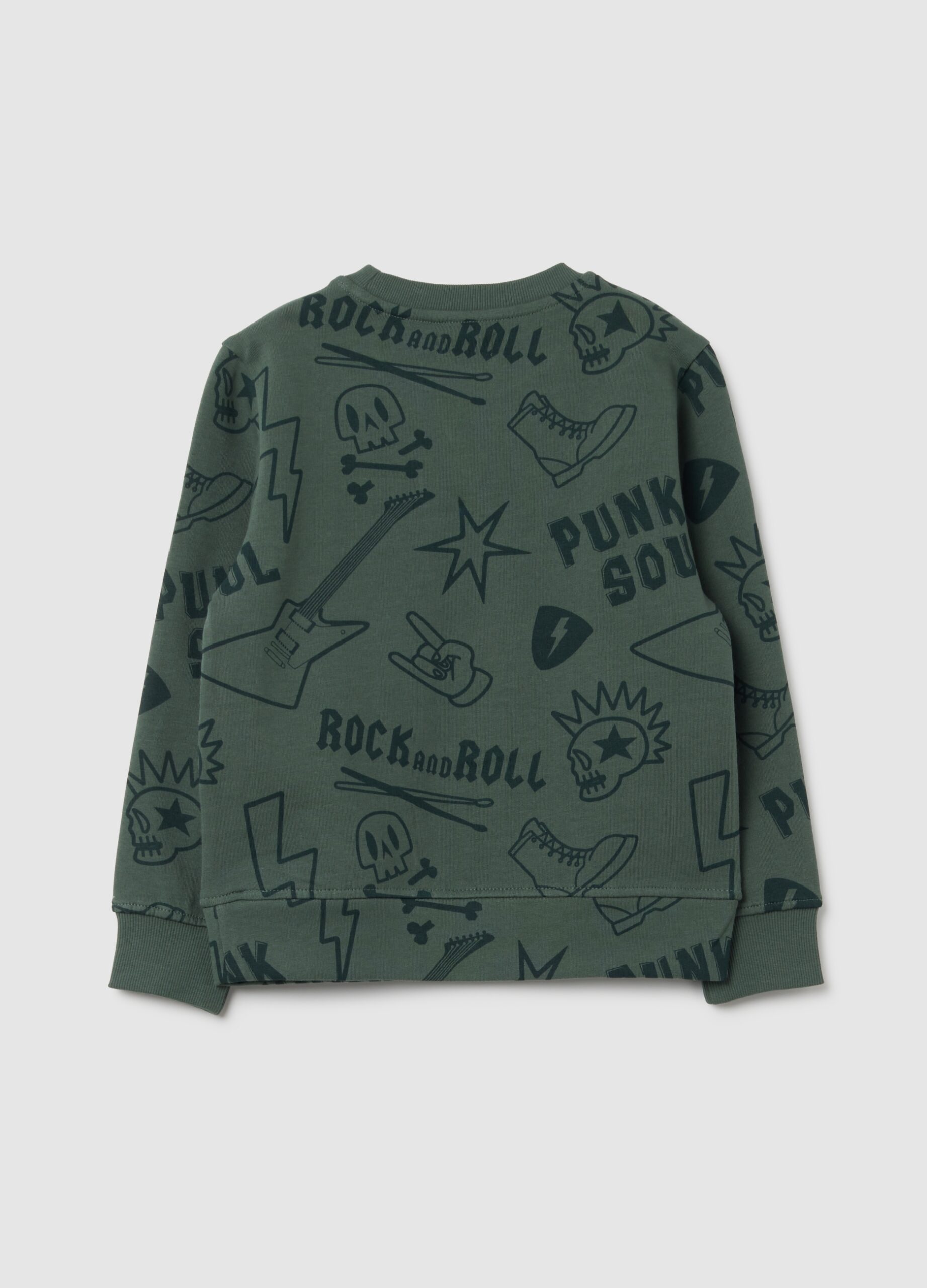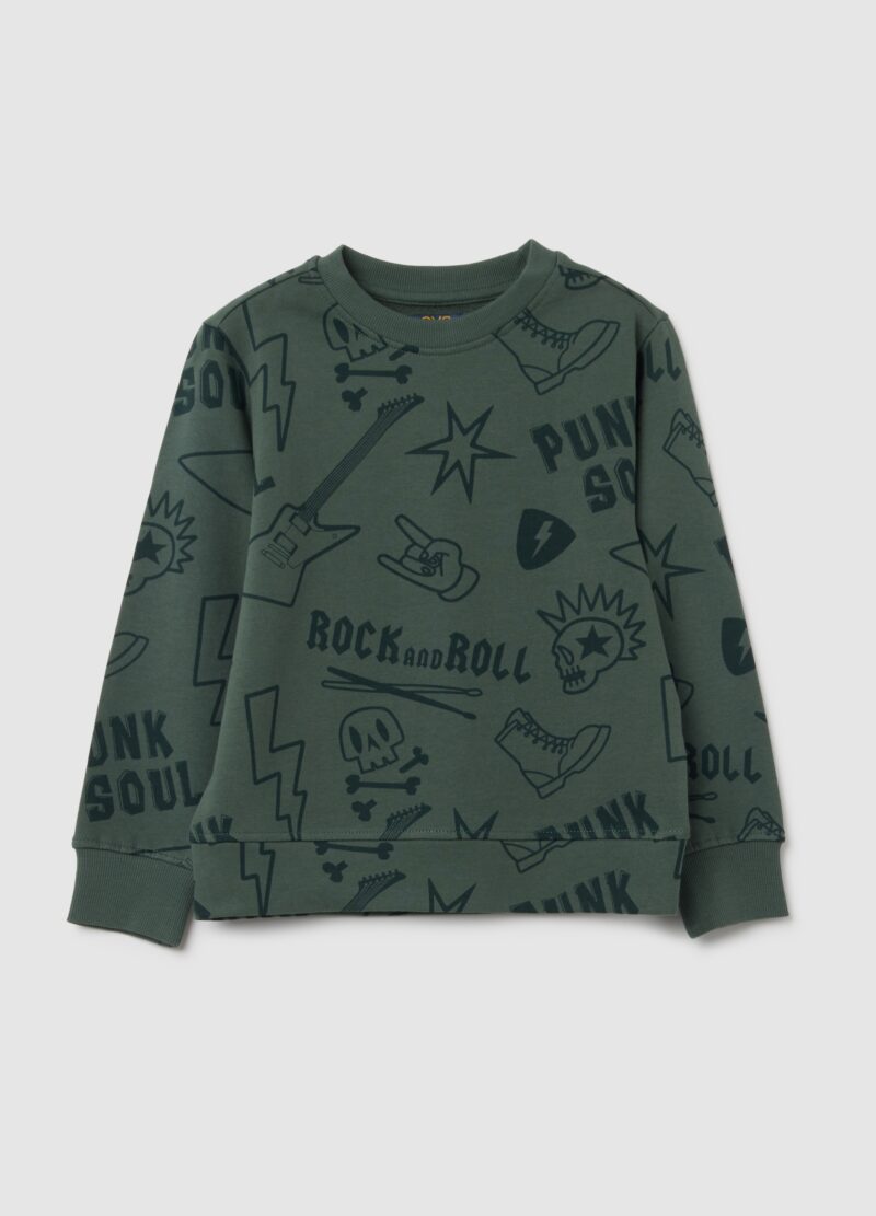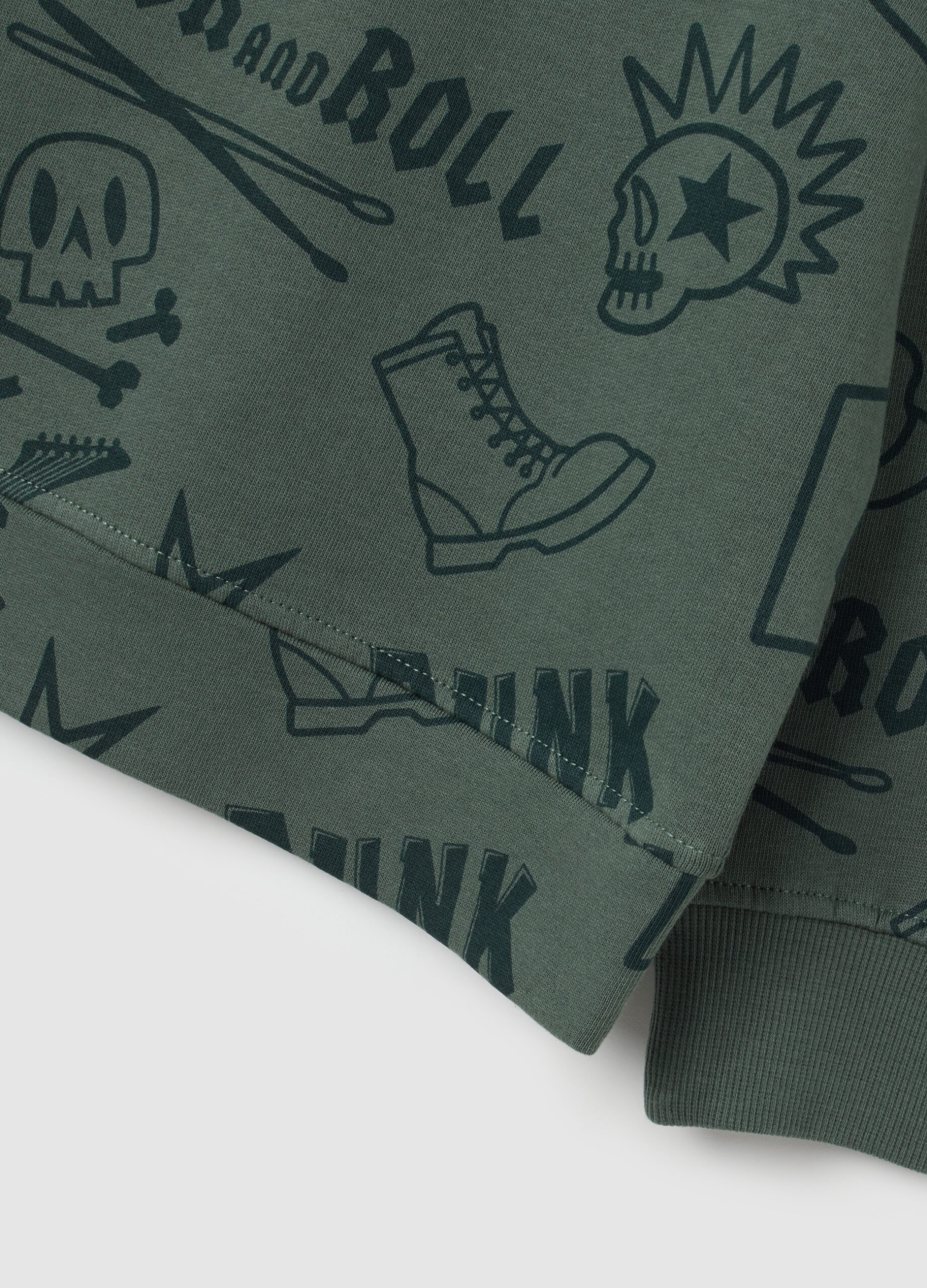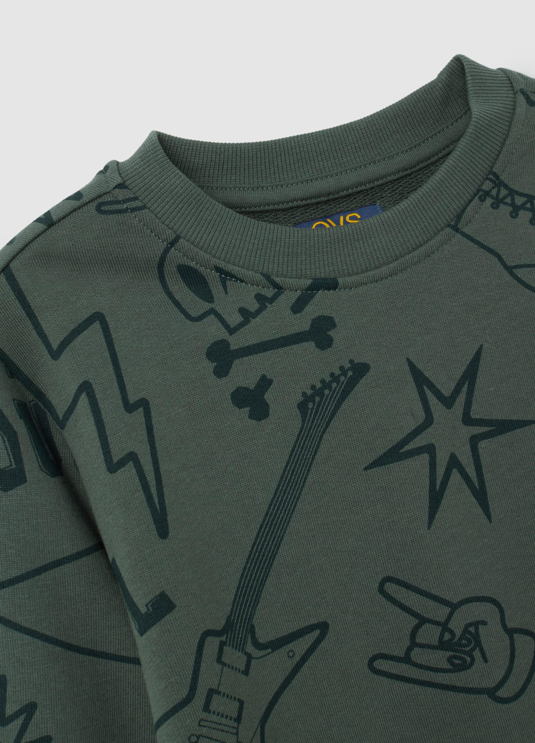 Ce sweat-shirt vert de la ligne OVS Kids est en coton pur, idéal pour les enfants âgés de 3 à 10 ans. Il présente un design à thème rock and roll avec un ajustement surdimensionné, sans capuche et avec un cou rond, parfait pour un look décontracté. Disponible en tailles de trois à dix ans, il assure un maximum de confort pour toute occasion.