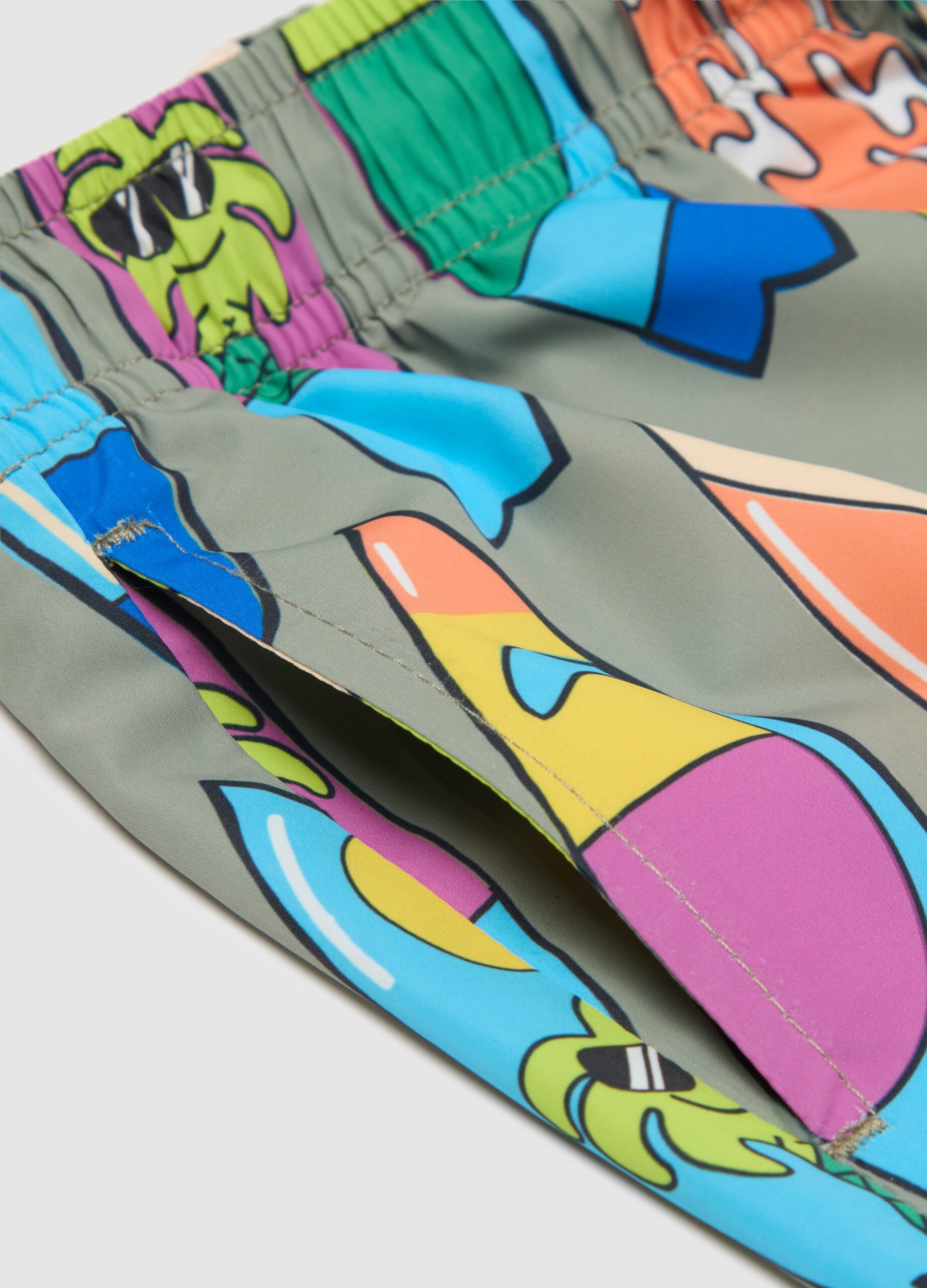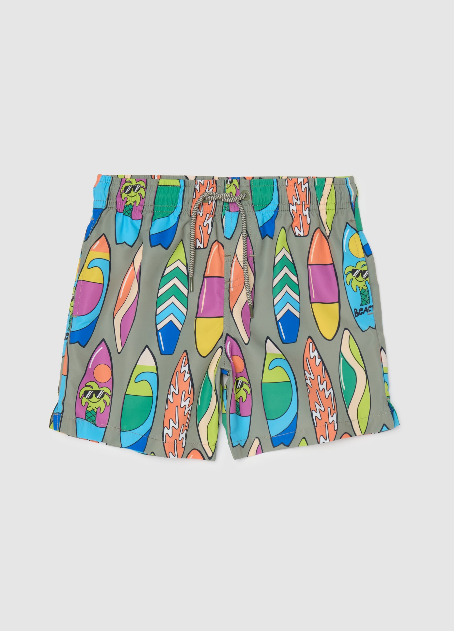 Le maillot de bain multicolour de la ligne OVS Kids est conçu pour les enfants de 3 à 10 ans. Avec un motif de planche de surf animé, il offre un ajustement confortable grâce à la ceinture élastique et aux liens réglables. Idéal pour les jours d’été à la plage, cet article combine l’aspect pratique et le style, parfait pour ceux qui recherchent un look frais et coloré au bord de la mer.