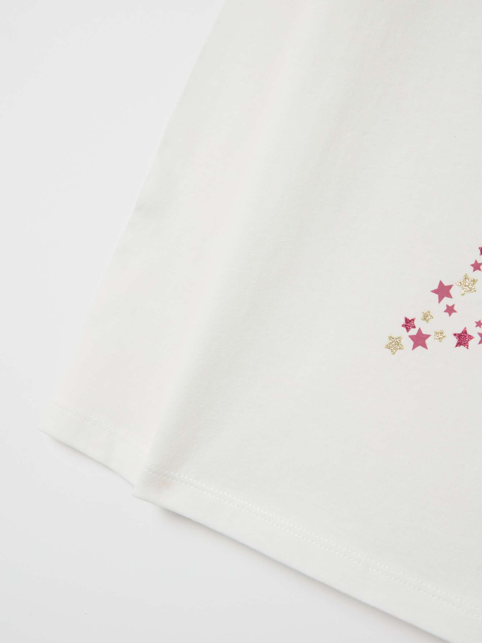 T-shirt 100% coton à manches longues. Col rond. Imprimé pailleté en forme d’étoile sur le devant.