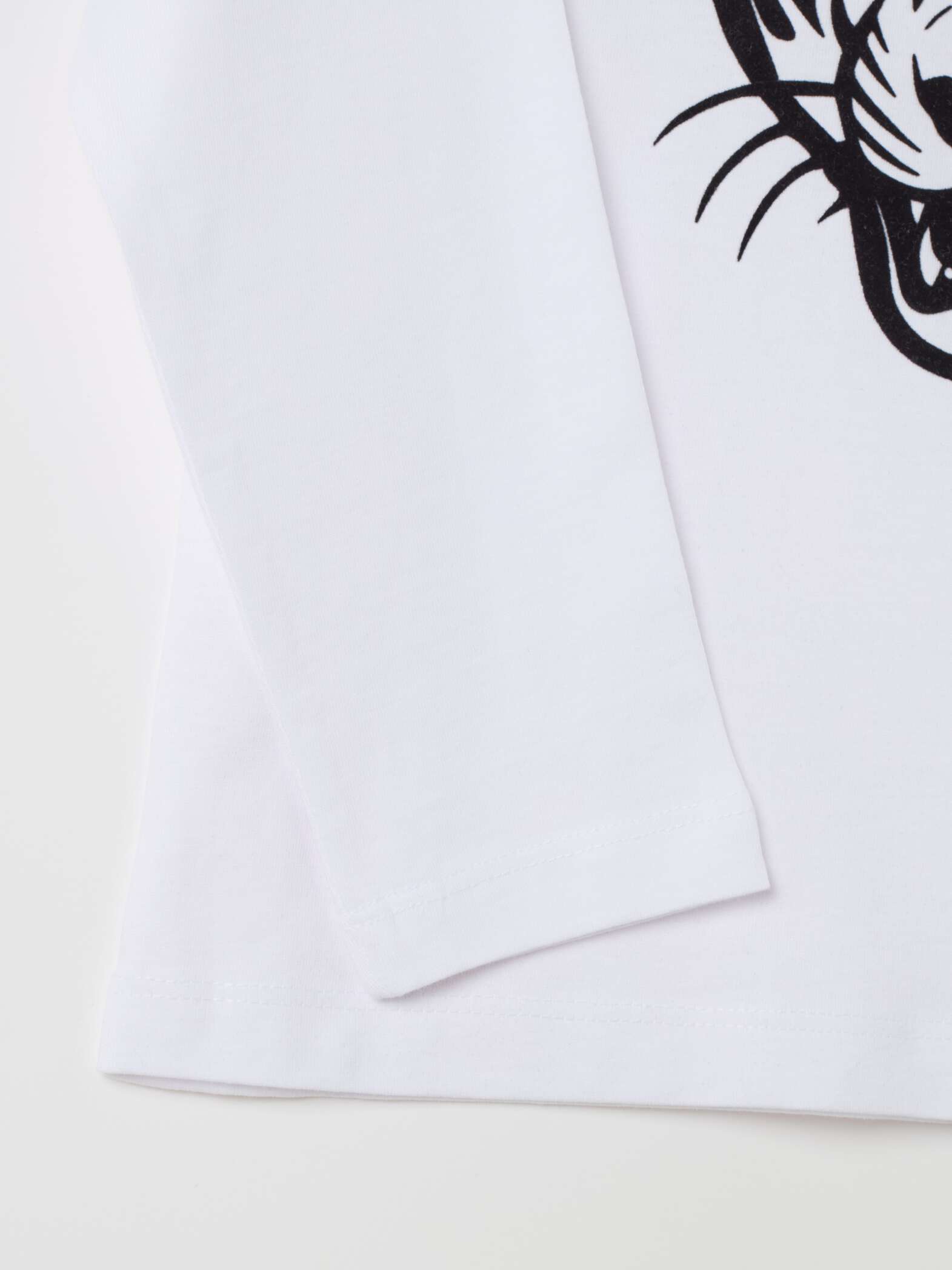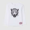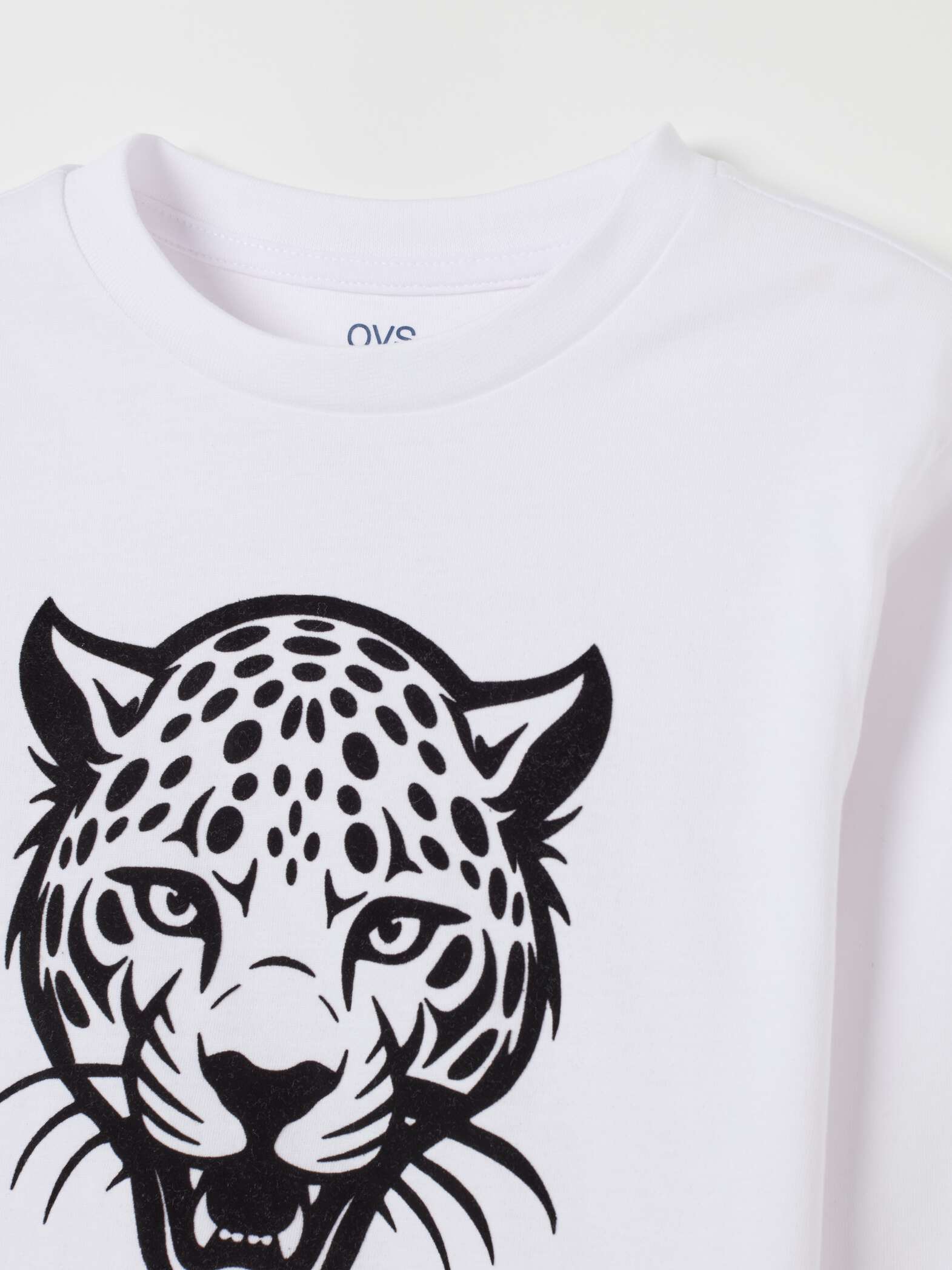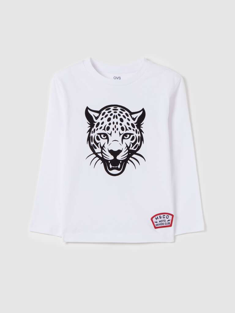 T-shirt à manche longue en puro cotone. Scollo rotondo. Timbre léopard sur l’avant avec le patch « Moto Drivers Club » appliqué au fond.