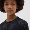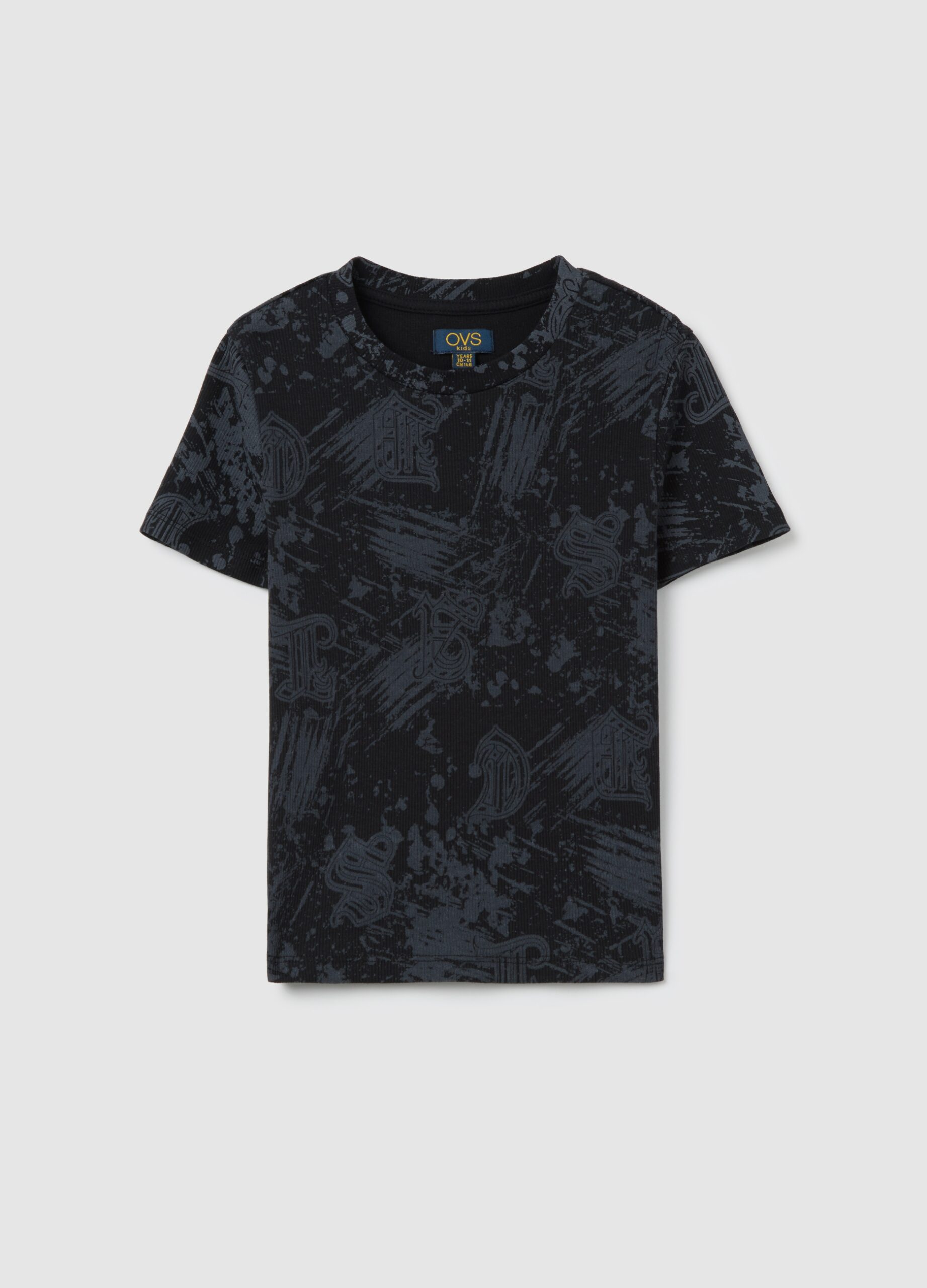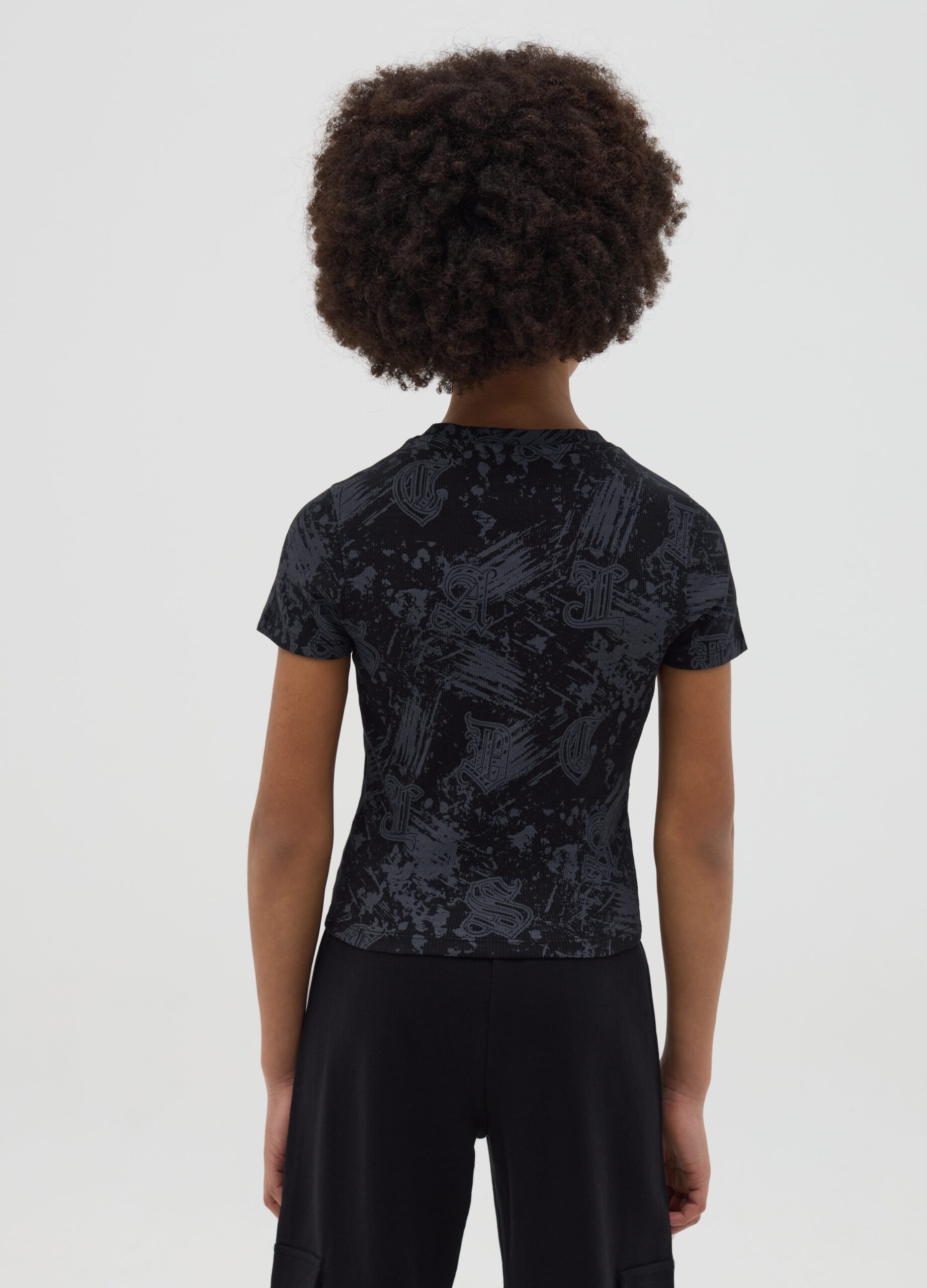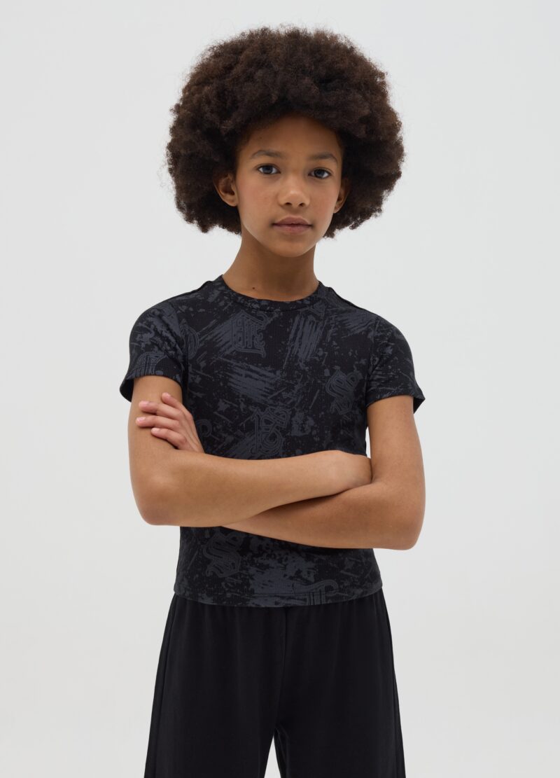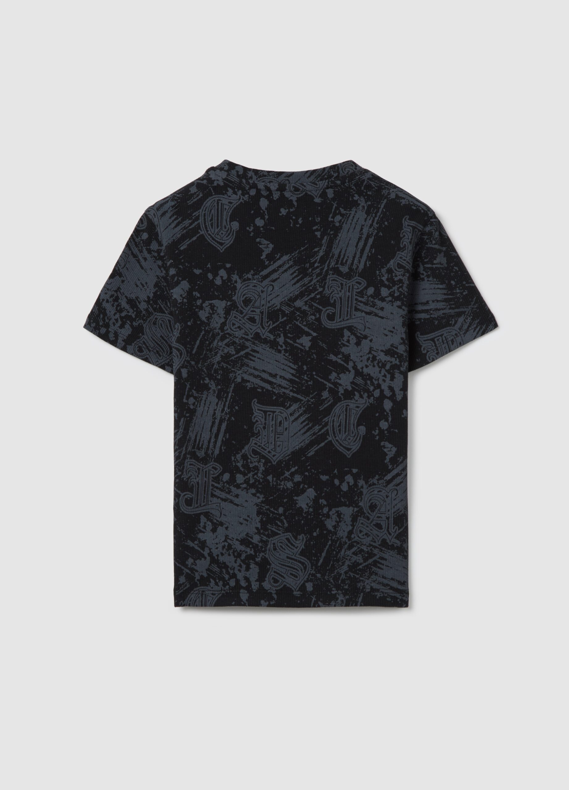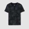T-shirt slim noir en coton extensible. Motif de tie-dye. Cou de l’équipage. Manches courtes.