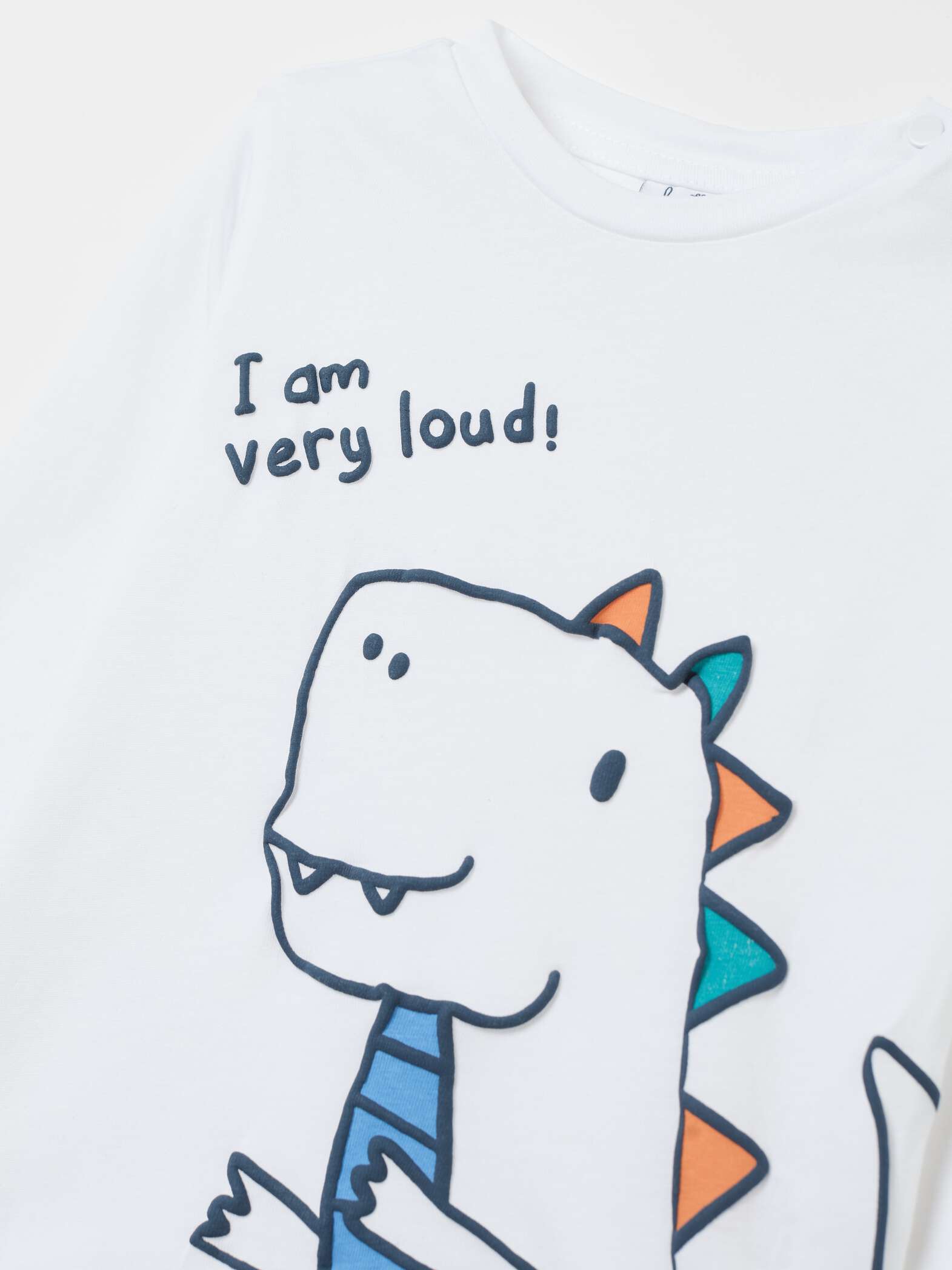 T-shirt 100% coton à manches longues. Col rond avec boutons pression sur l’épaule. Lettrage et imprimé dinosaure en caoutchouc sur le devant.