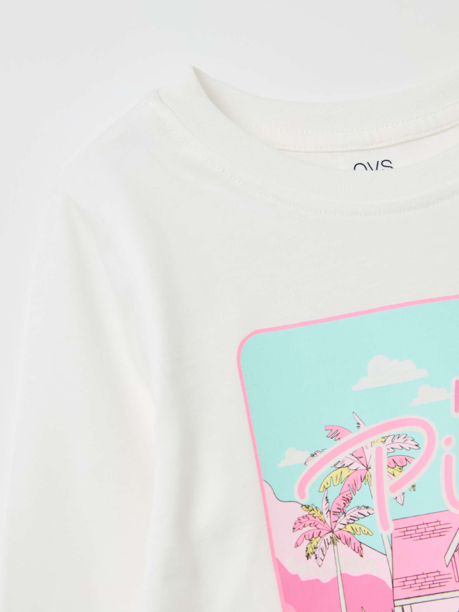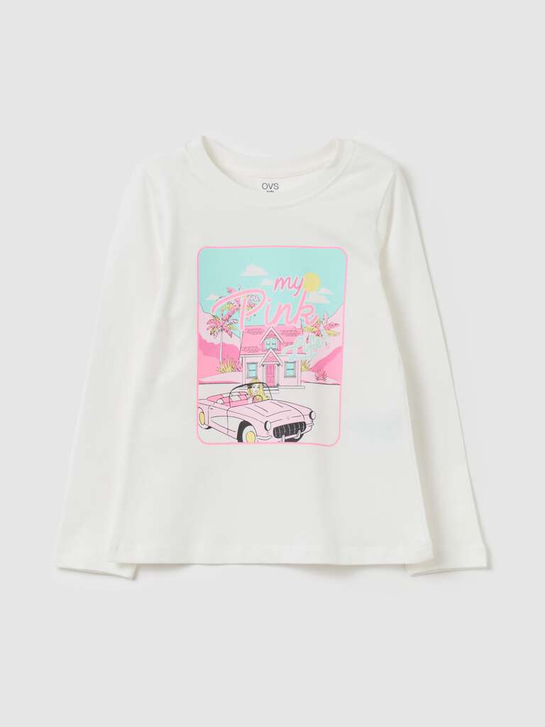 T-shirt 100% coton à manches longues. Col rond. Imprimé voiture avec fille sur le devant.