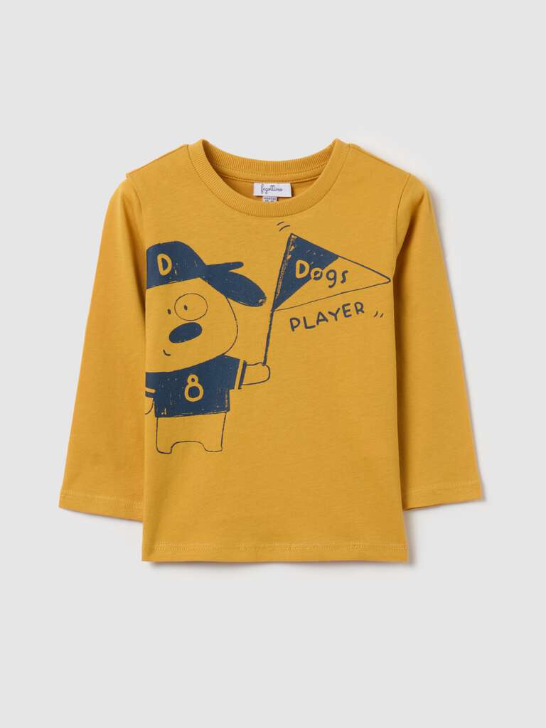 T-shirt 100% coton à manches longues. Col rond côtelé. Imprimé chiot et drapeau avec inscription « Dogs Player » sur le devant.
