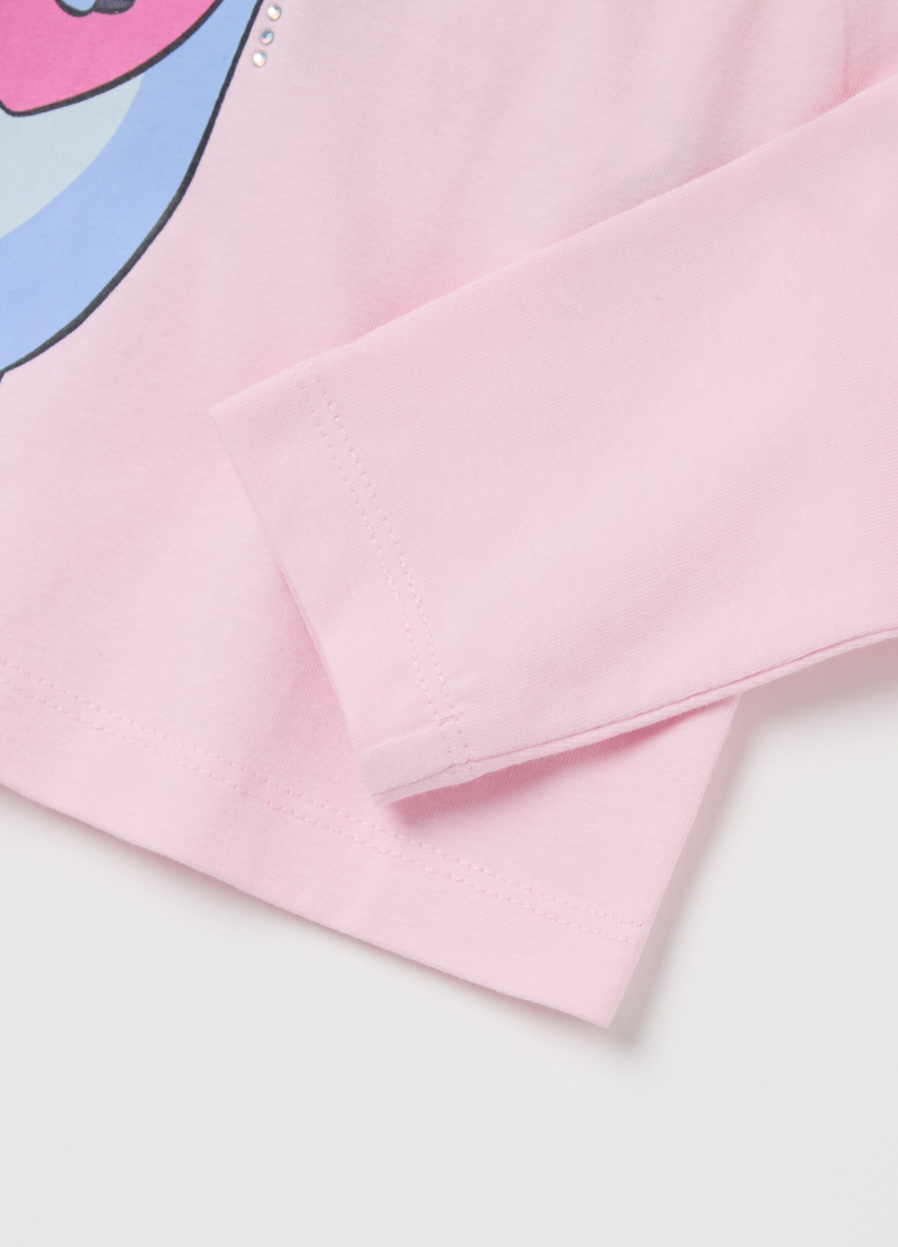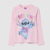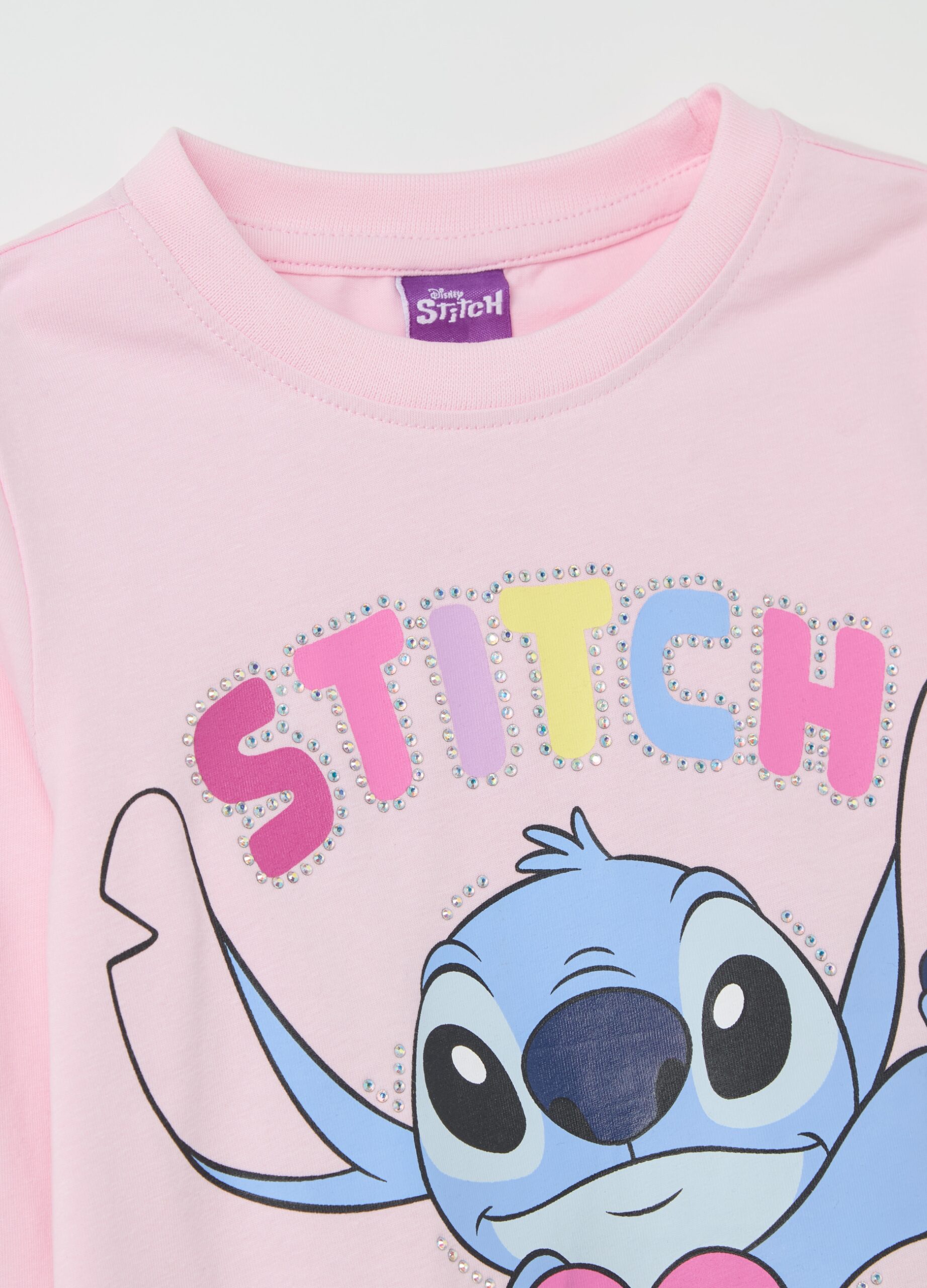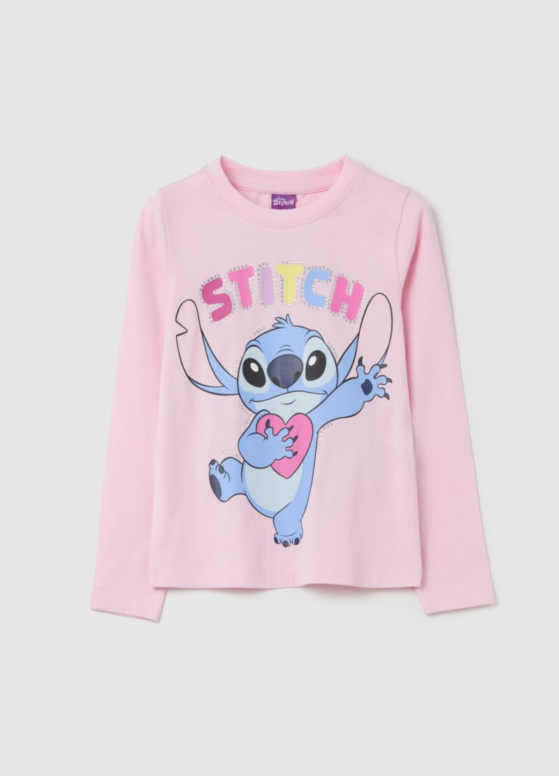 T-shirt à manches longues en coton stretch. Col rond. Imprimé Disney Stitch avec strass sur le devant.