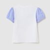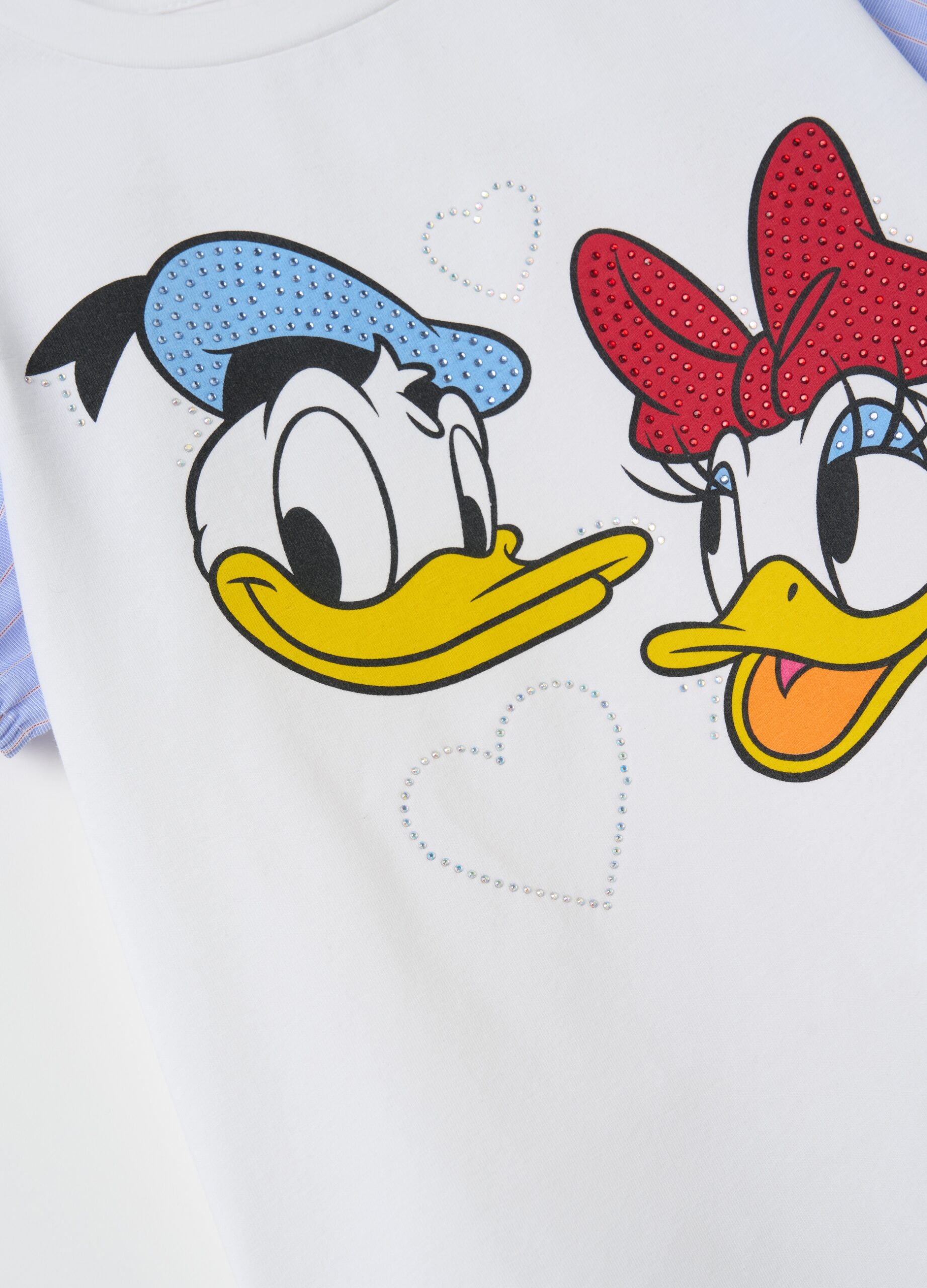 T-shirt en coton stretch. Col rond. Manches bouffantes à motif rayé et bordure élastiquée. Imprimé Disney Donald et Daisy Duck avec applications en strass.
