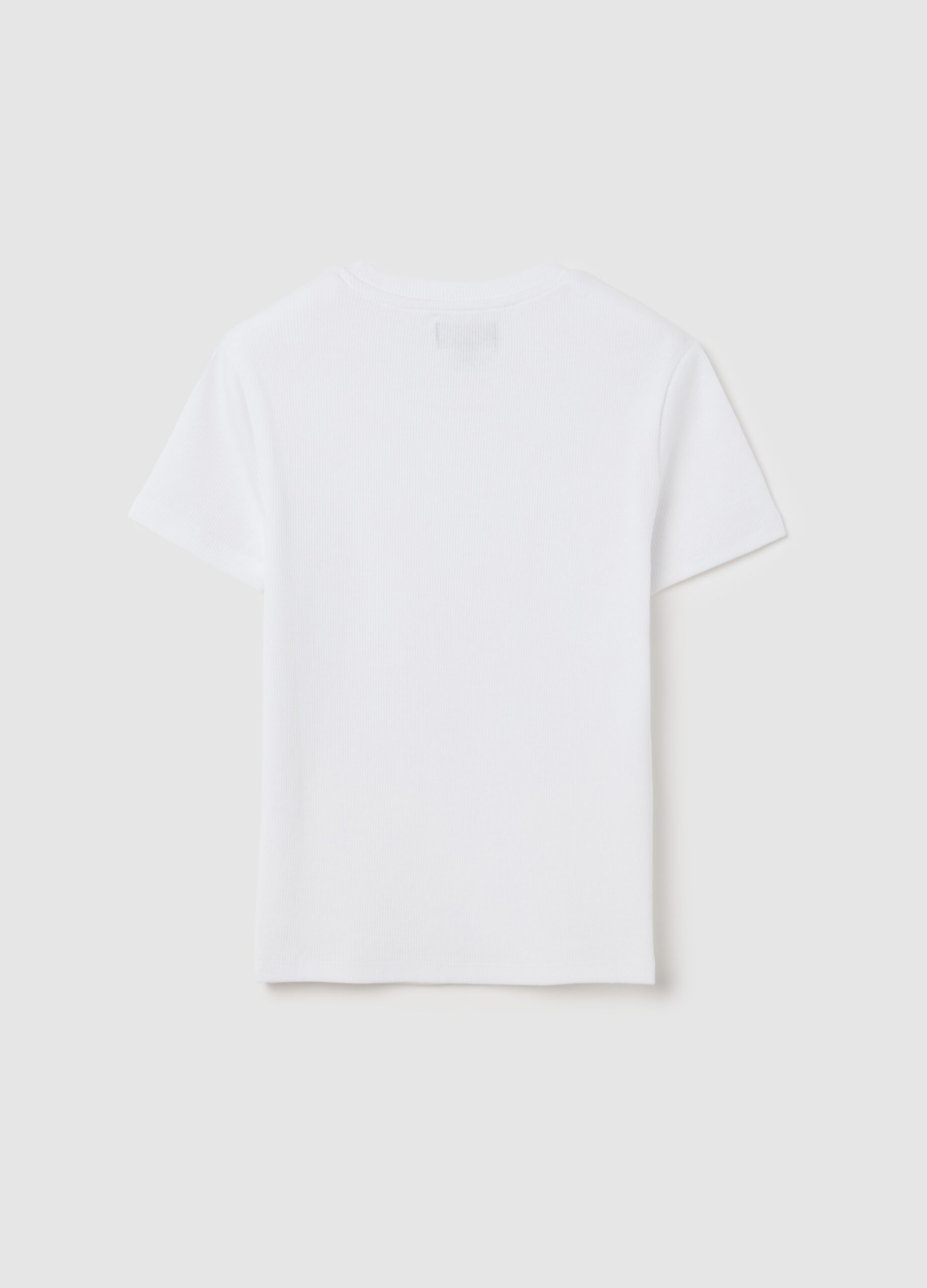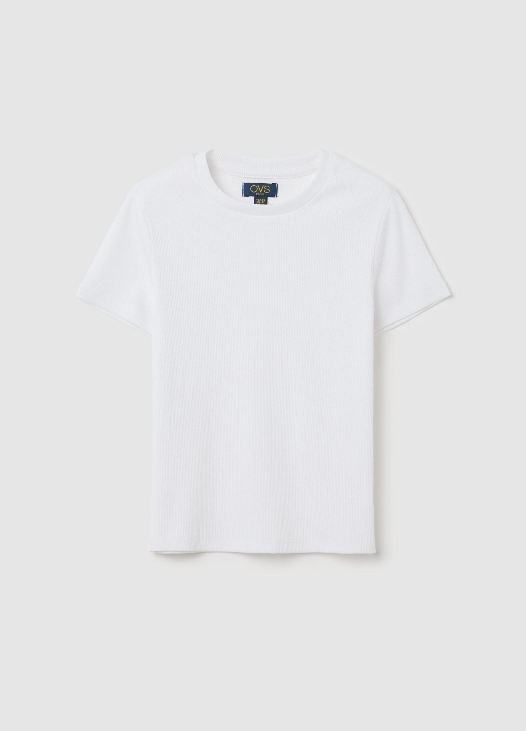 Ce t-shirt blanc est conçu pour les filles de 10 à 15 ans. Fabriqué en coton extensible pour offrir du confort et de l’adaptabilité. Parfait pour un style moderne élégant. Le design ajusté, le cou rond et les manches courtes le rendent idéal pour la période printemps / été. De la ligne OVS Kids, il s’agit d’un élément polyvalent qui convient à l’usure à différentes occasions.