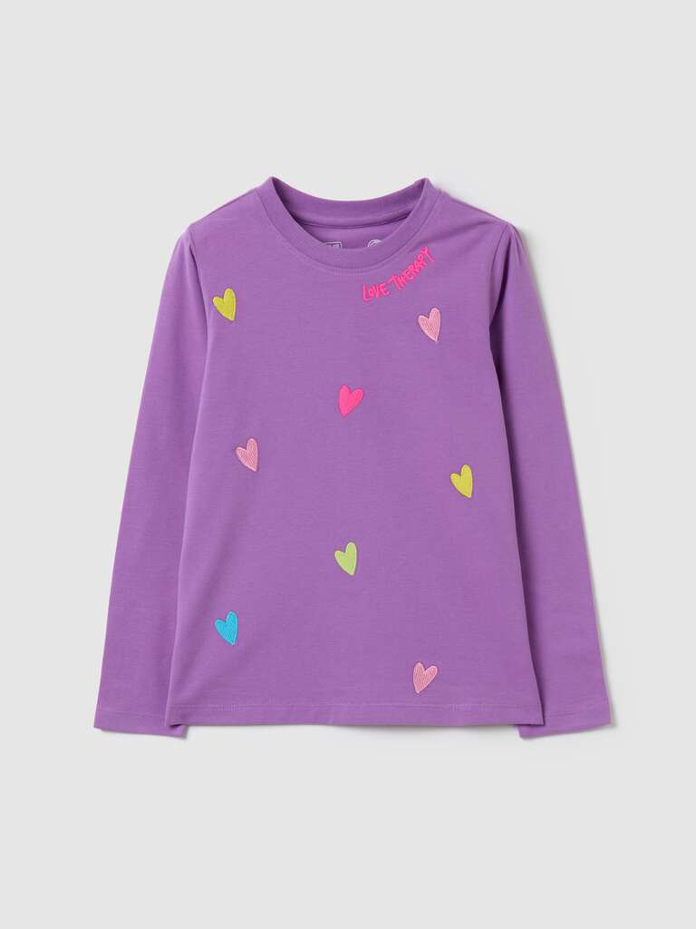 T-shirt en coton stretch Love Therapy à manches longues. Col rond. Broderie « Love Therapy » avec coeurs multicolores sur le devant.
