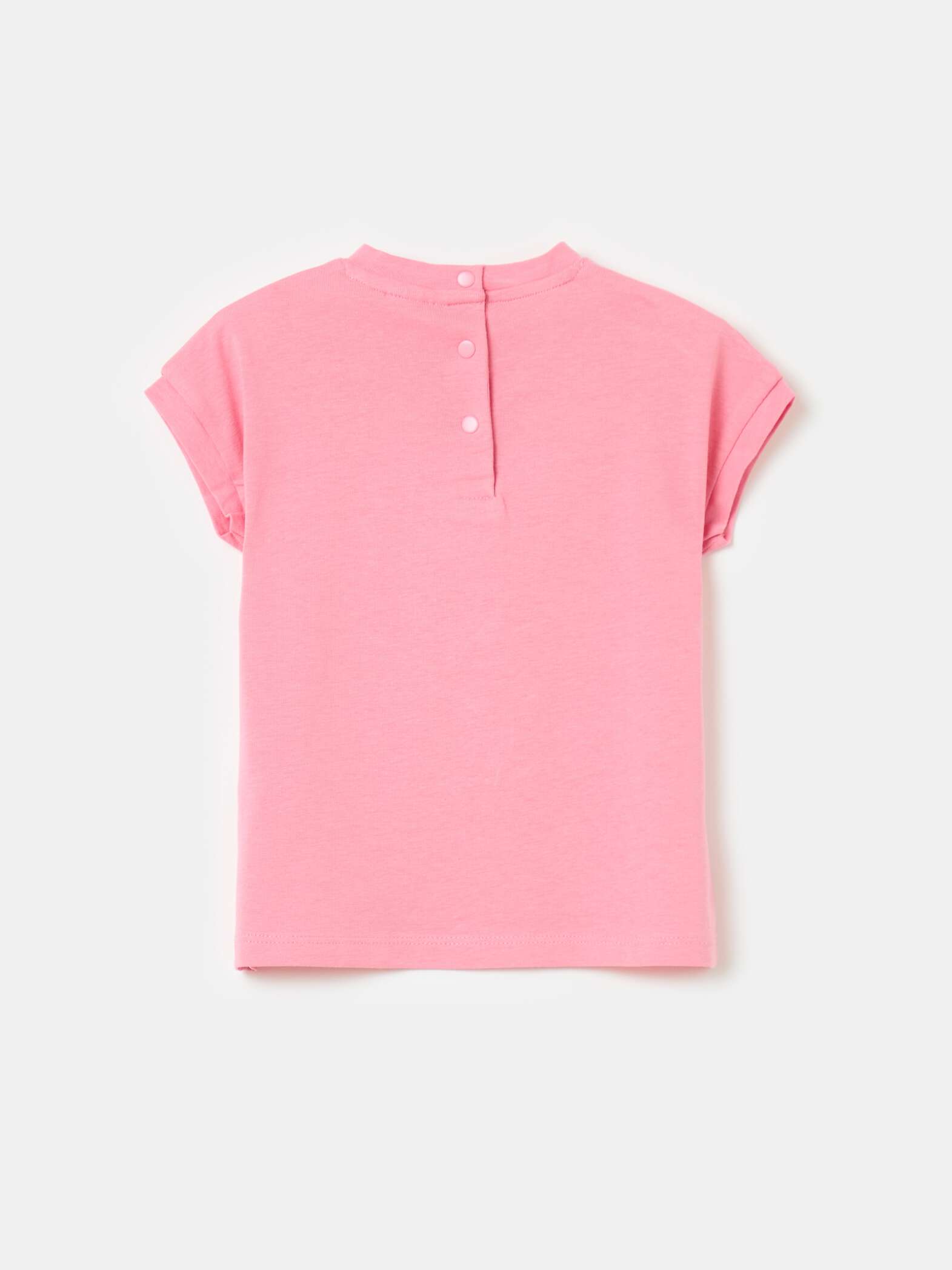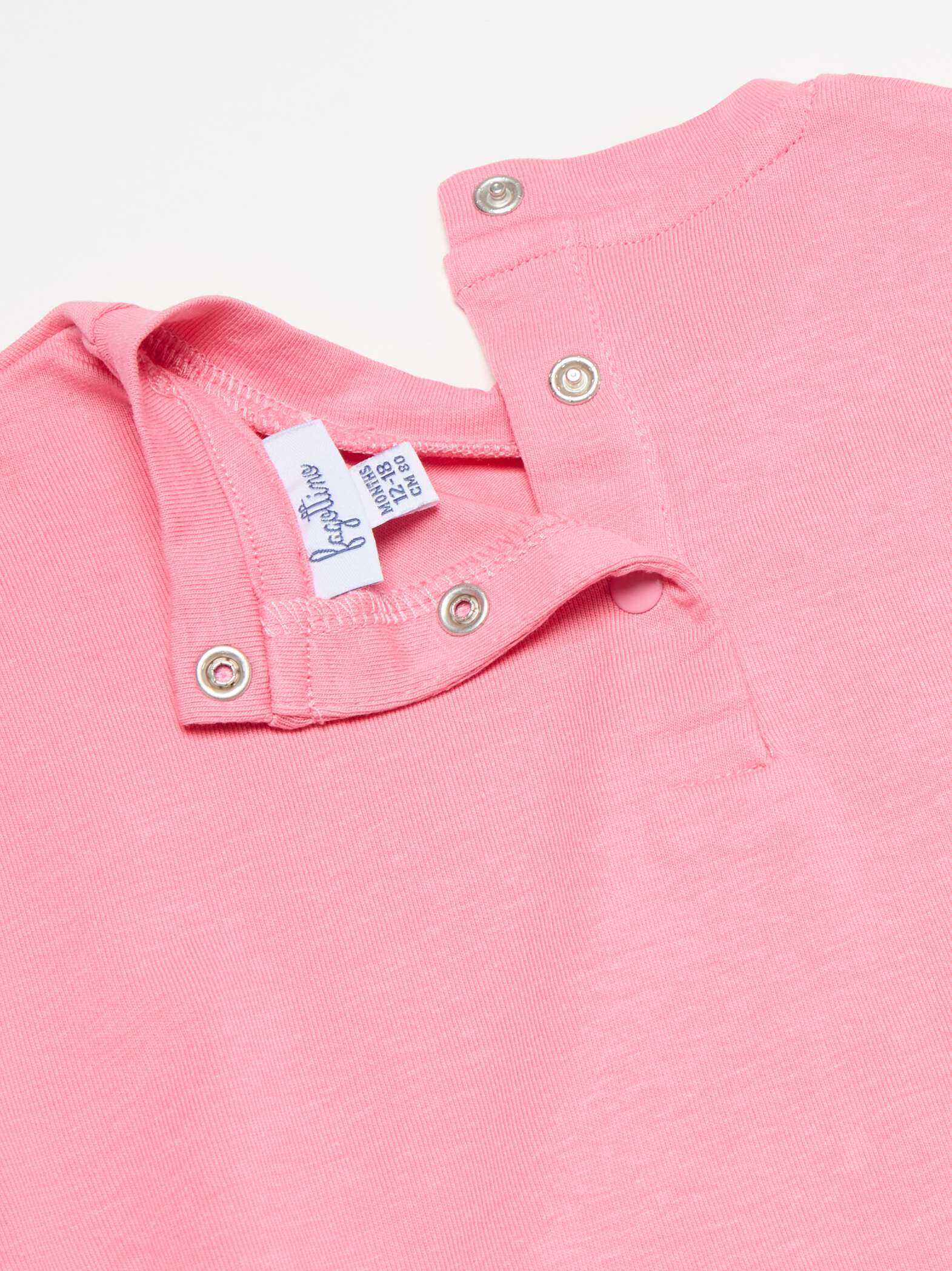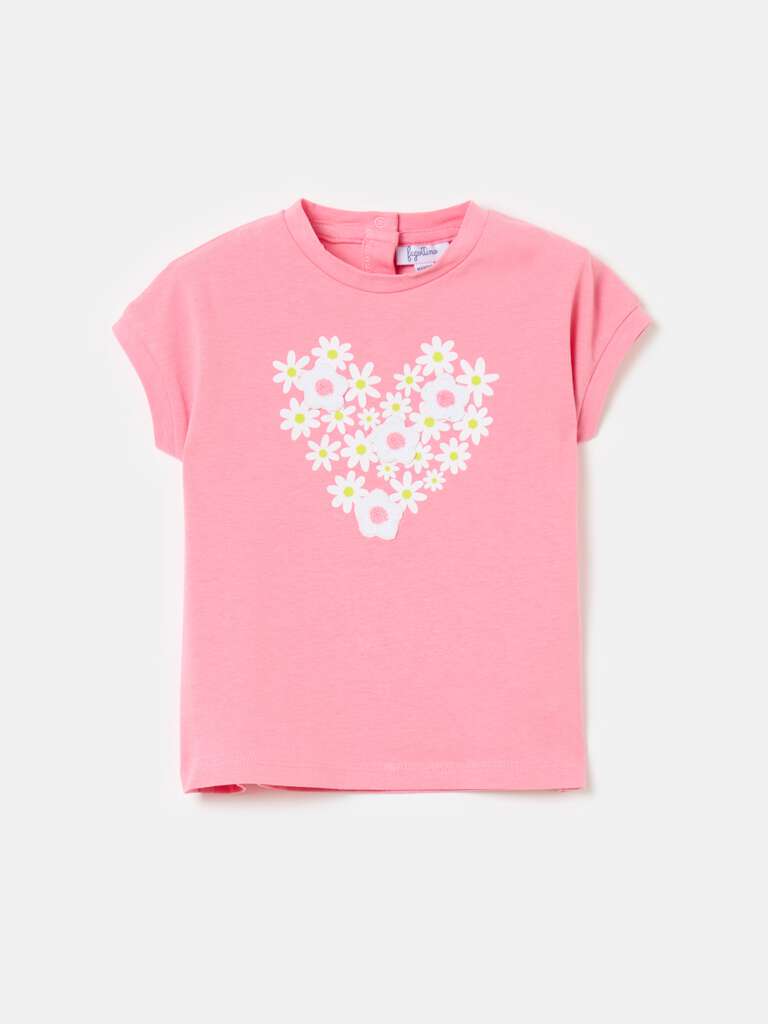 T-shirt en coton extensible. Col rond avec boutons pression au dos. Imprimé floral en forme de cœur et application de fleurs au crochet sur le devant.