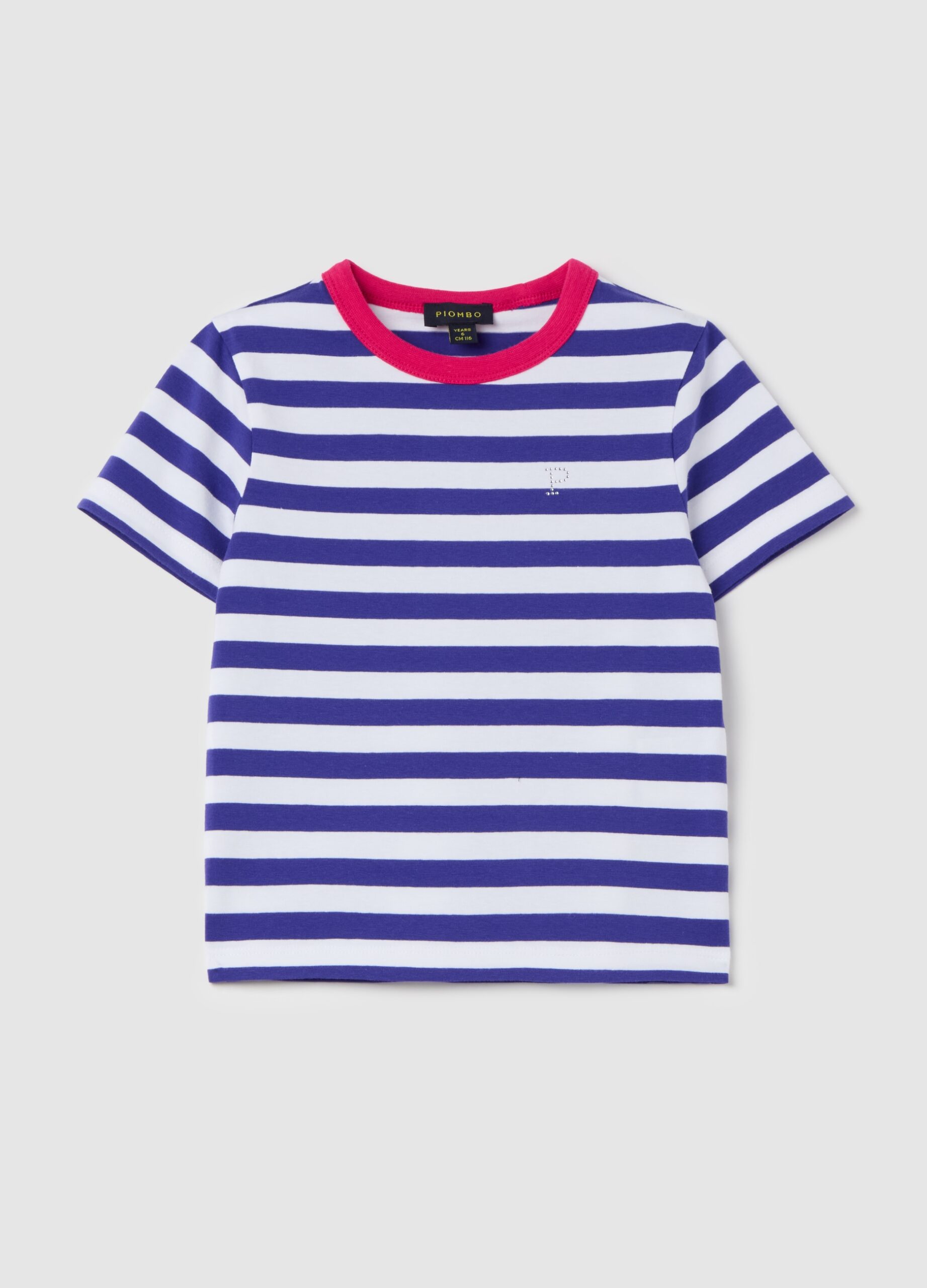 T-shirt en coton Piombo Stretch. Cou rond en couleur contrastée. Modèle rayé et application du logo Diamanti sur le côté.