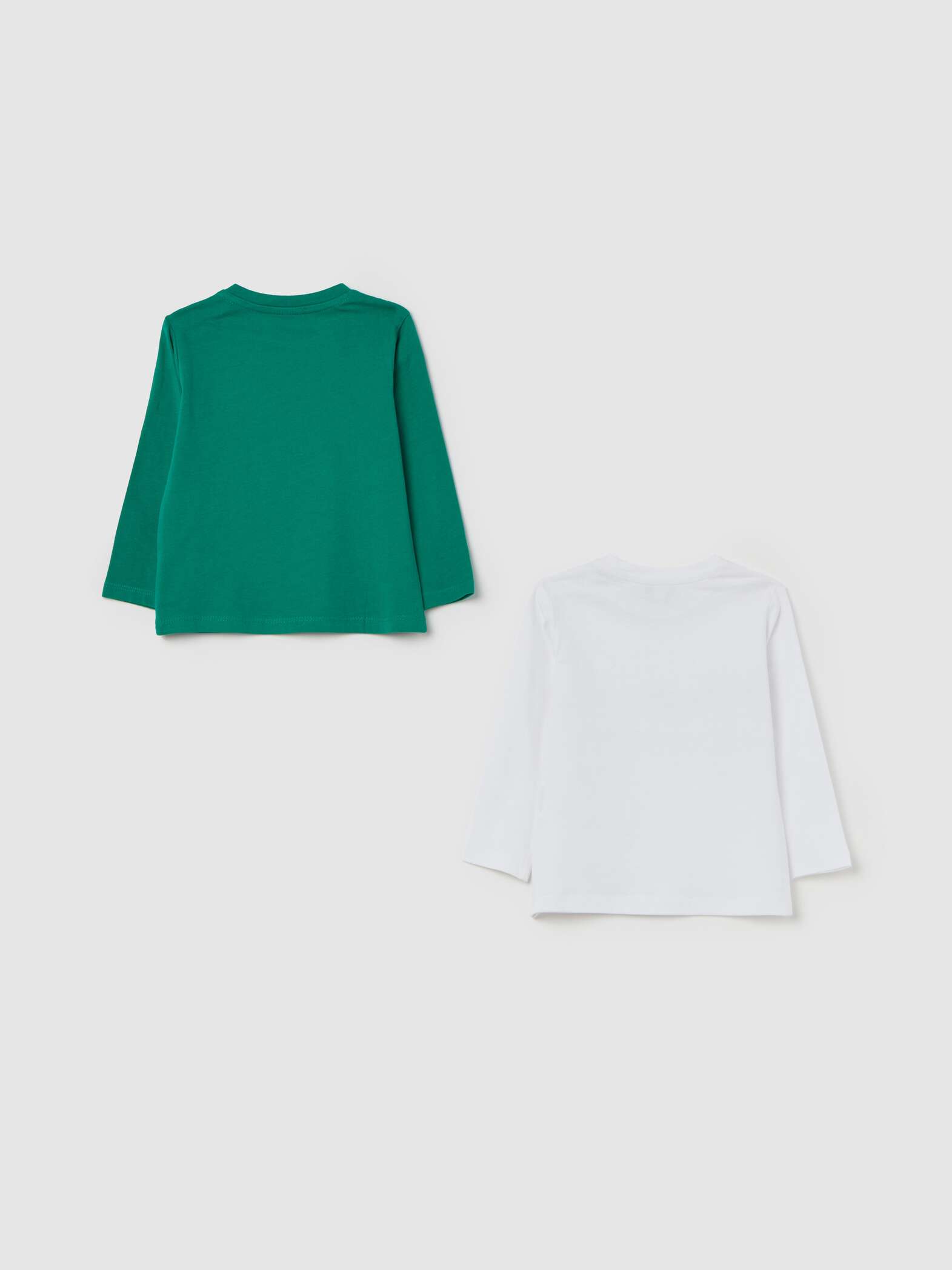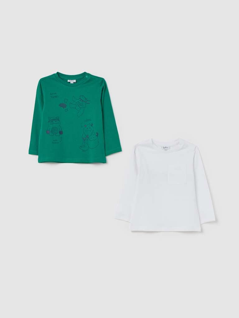 Set composto da due t-shirt a maniche longhe en pur coton. Tournez le rond avec les boutons automatiques sur l’espace. Un t-shirt avec un imprimé imprimé et le motif « Gym Time » sur les devants. Un t-shirt teinté avec une tâche appliquée sur le côté.