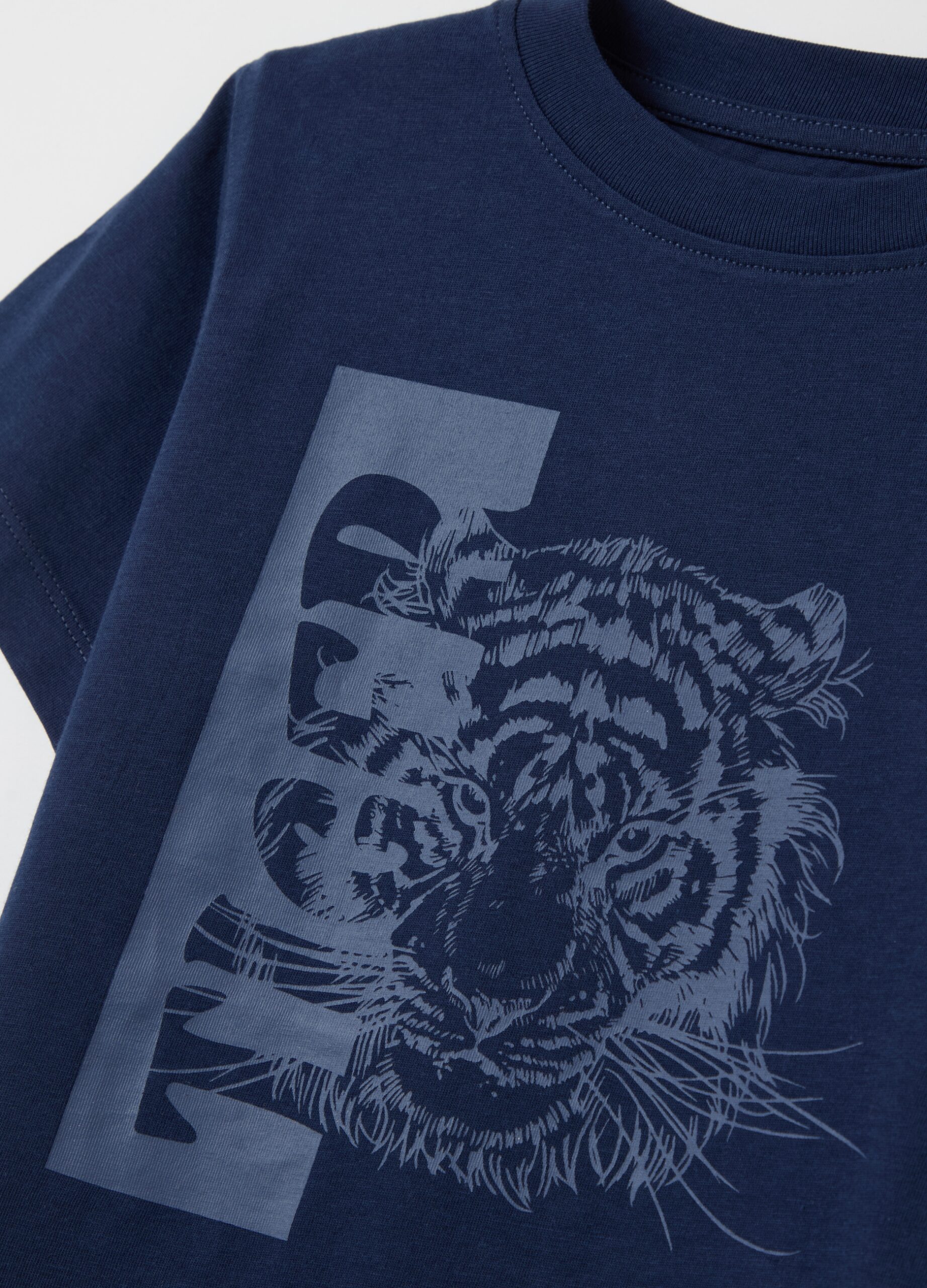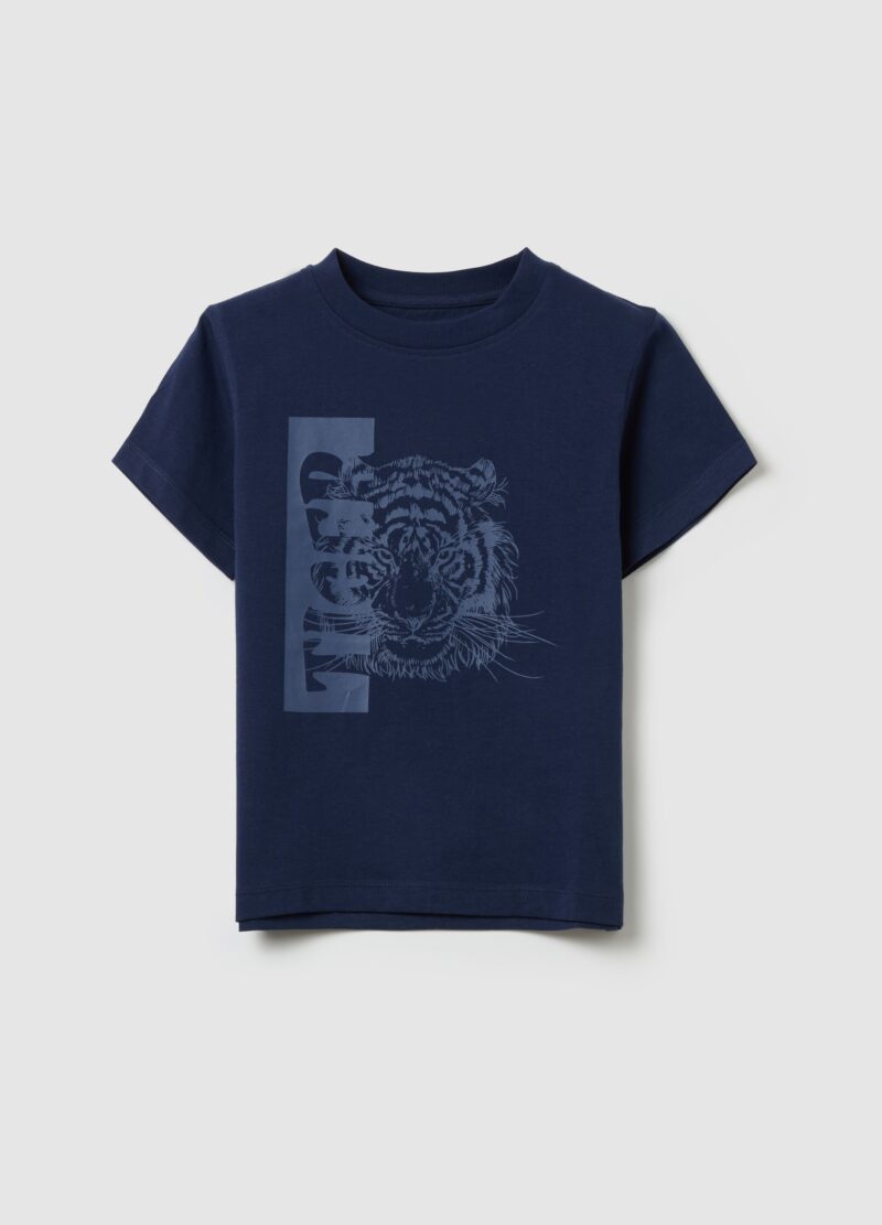 T-shirt 100% coton. Nou rond. Tiger Print et lettrage  » Tiger  » sur le devant.