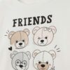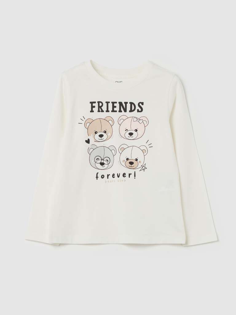 T-shirt 100% coton à manches longues. Col rond. Imprimé oursons avec strass et inscription « FRIENDS forever! » sur le devant.