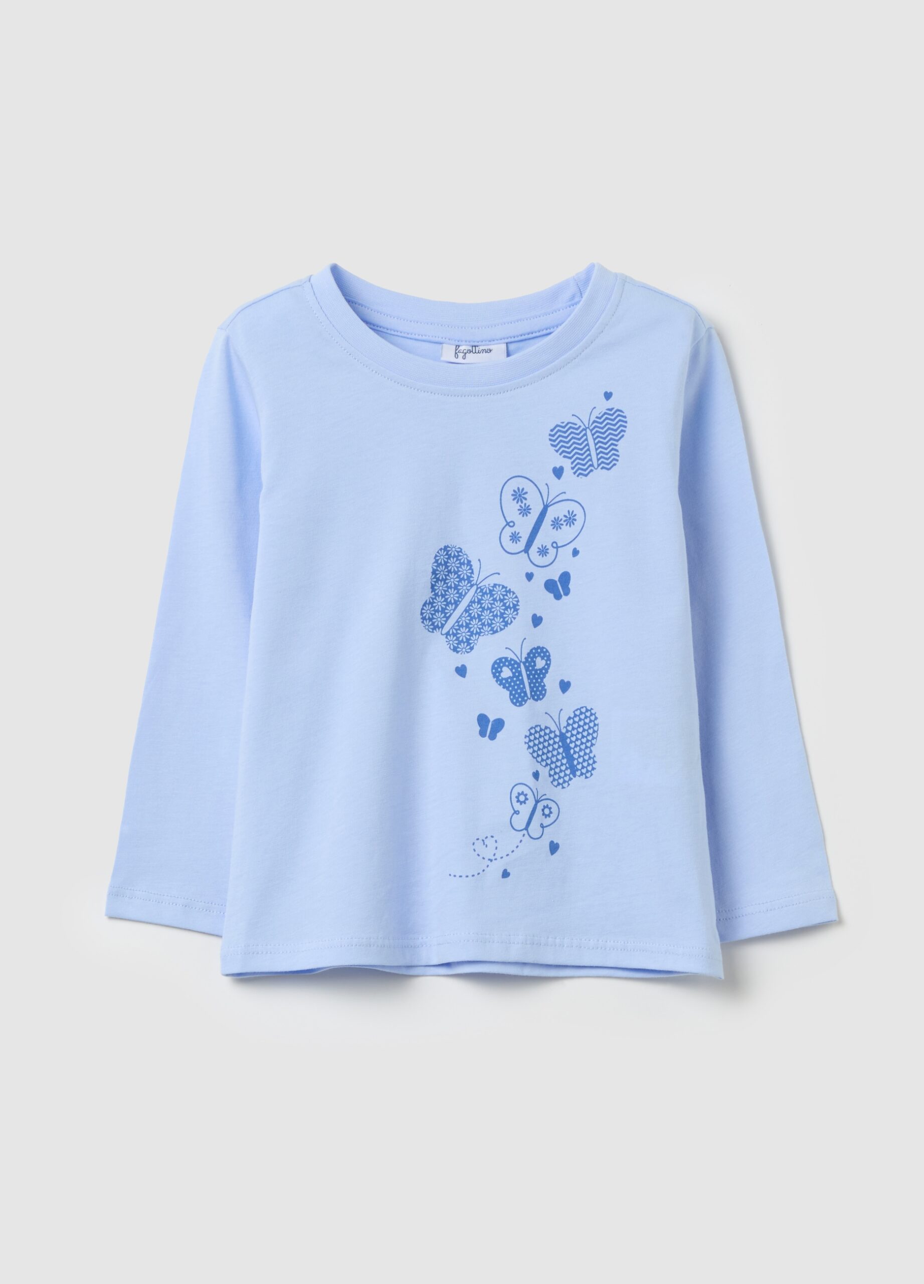 T-shirt 100% coton à manches longues. Nou rond. Impression de papillon à l’avant.