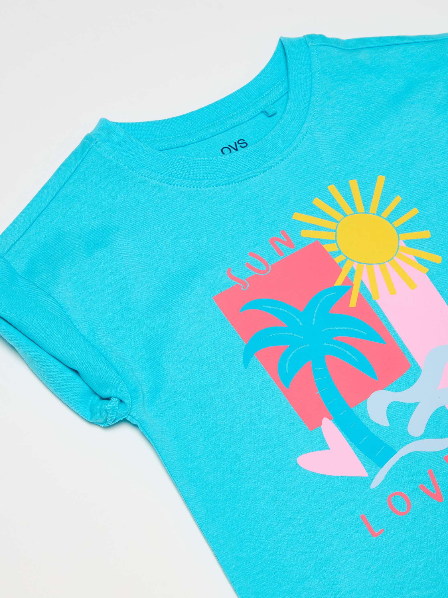 Tee-shirt 100% coton. Col rond. Plage et lettrage imprimé sur le devant.