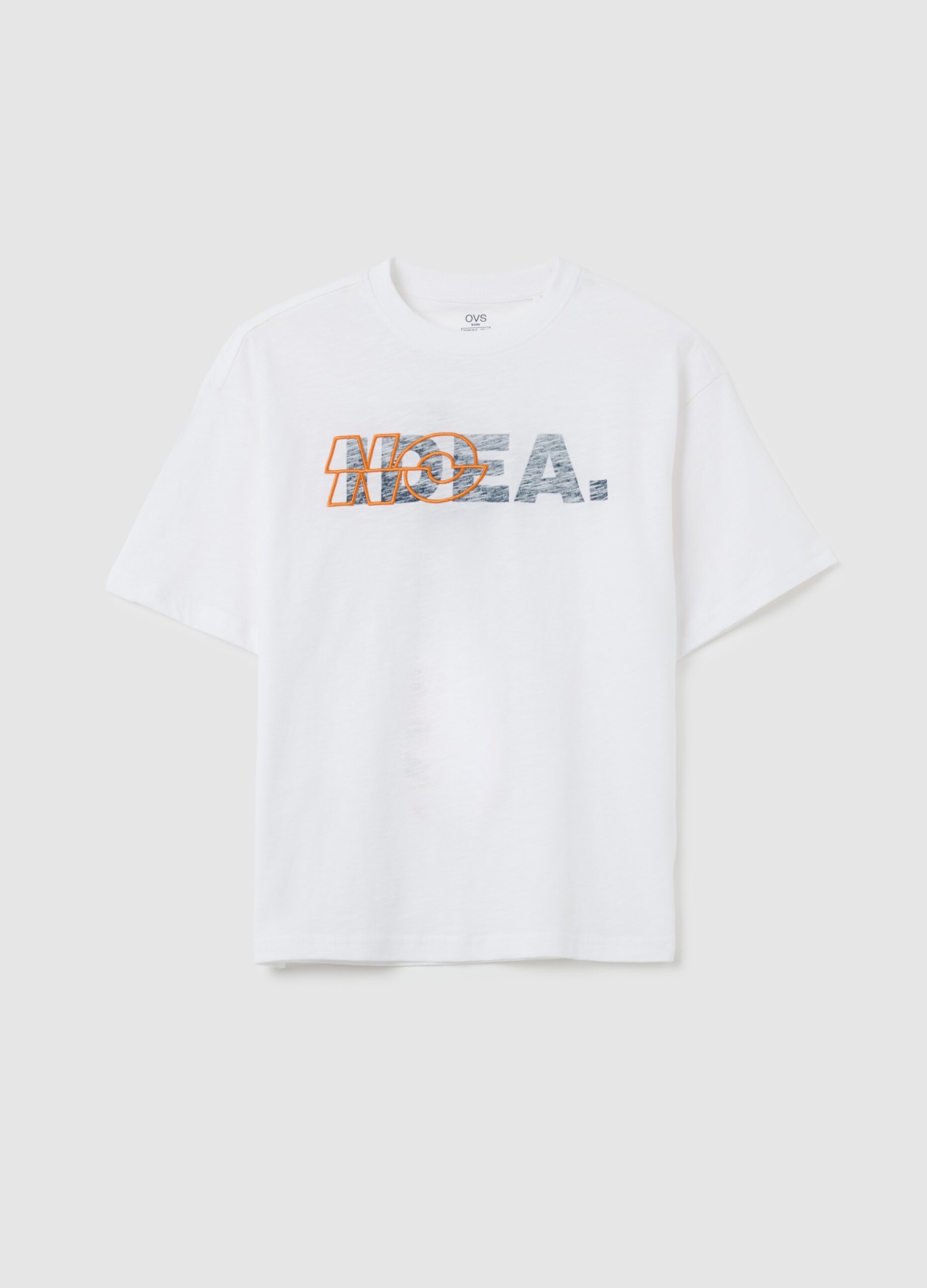Ce t-shirt blanc surdimensionné avec imprimé graphique de la ligne OVS Kids est conçu pour les garçons de 10 à 15 ans. Fait de coton pur, il offre un confort optimal tout au long de la journée. Son ajustement lâche le rend idéal pour un look décontracté et détendu, parfait pour les activités quotidiennes.