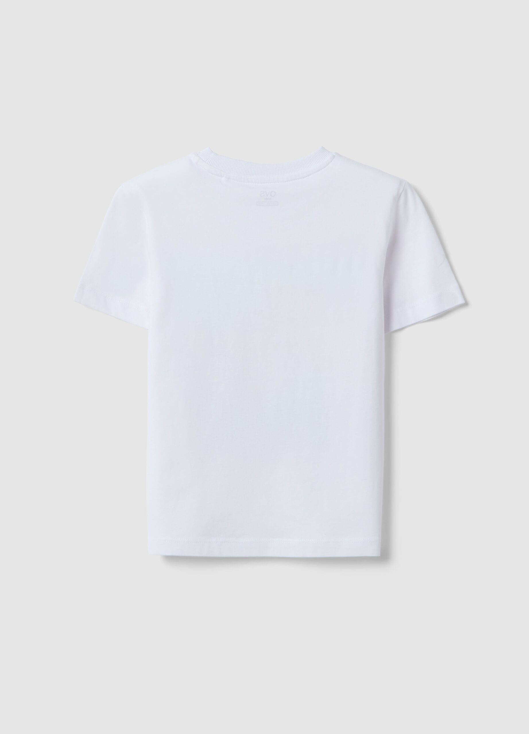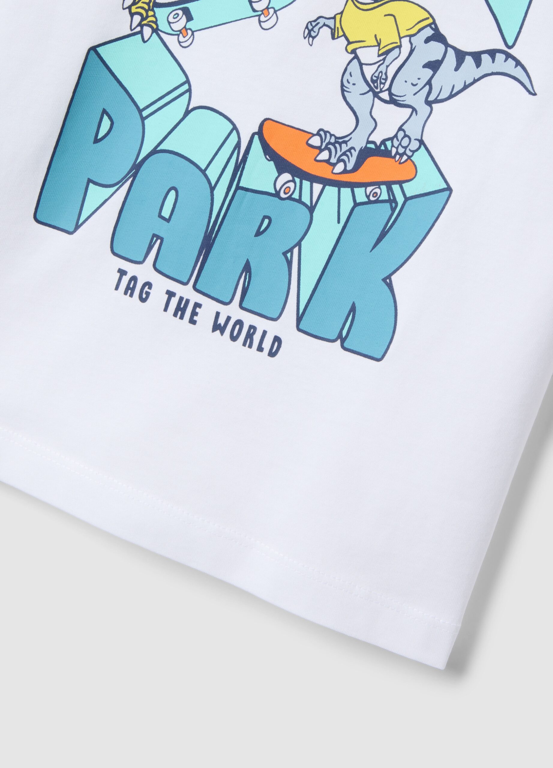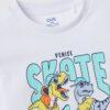 Le T-shirt blanc de la ligne OVS KIDS est confectionné en pur coton pour garantir confort et respirabilité et est conçu pour les enfants de 3 à 10 ans. Ce vêtement présente un col rond et des manches courtes, idéal pour la saison printemps-été. Avec un design amusant de dinosaures sur des skateboards, il est parfait pour les petits aventuriers. La coupe surdimensionnée assure la liberté de mouvement pendant les jeux en plein air.