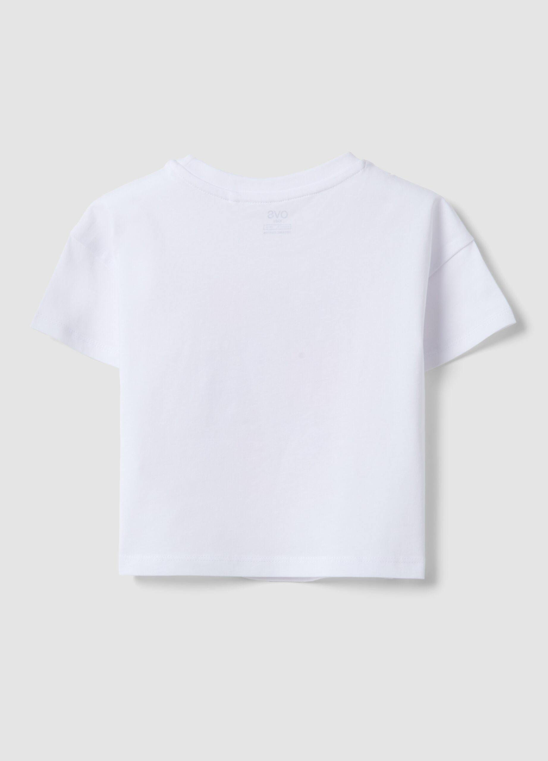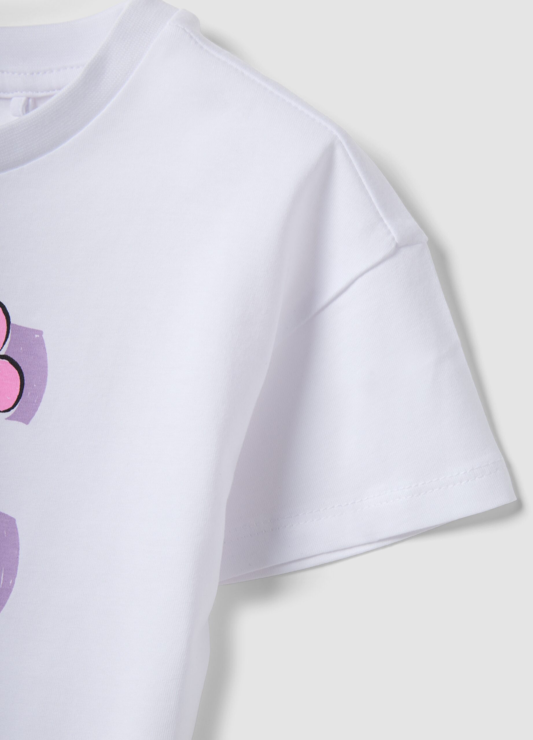 Le t-shirt blanc de la ligne OVS est confectionné en pur coton, garantissant confort et liberté de mouvement, et il est destiné aux filles âgées de 3 à 10 ans. Le col rond et les manches courtes le rendent idéal pour les journées chaudes. Le motif floral sur le devant ajoute une touche vivante aux looks du quotidien.