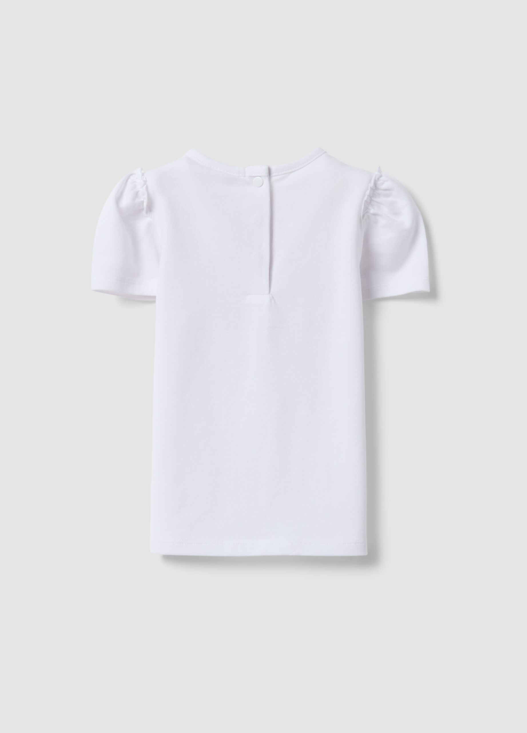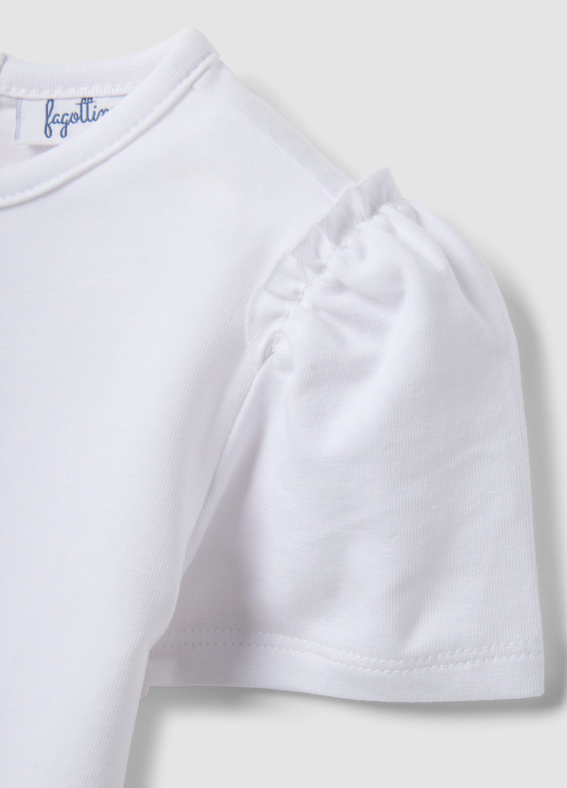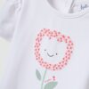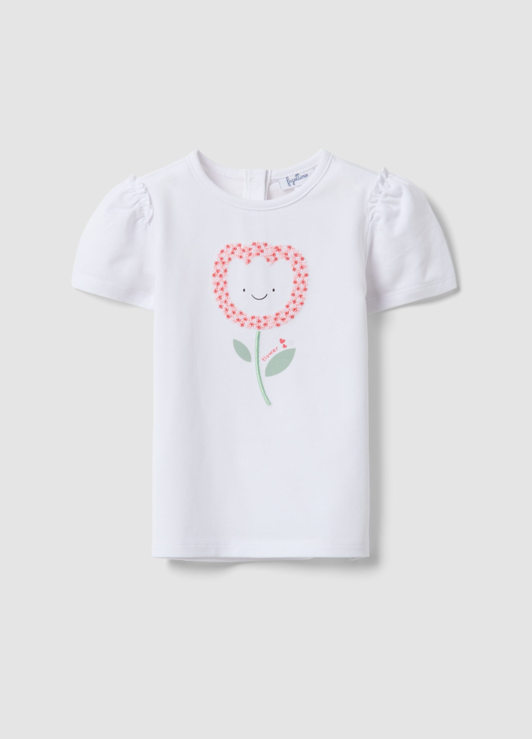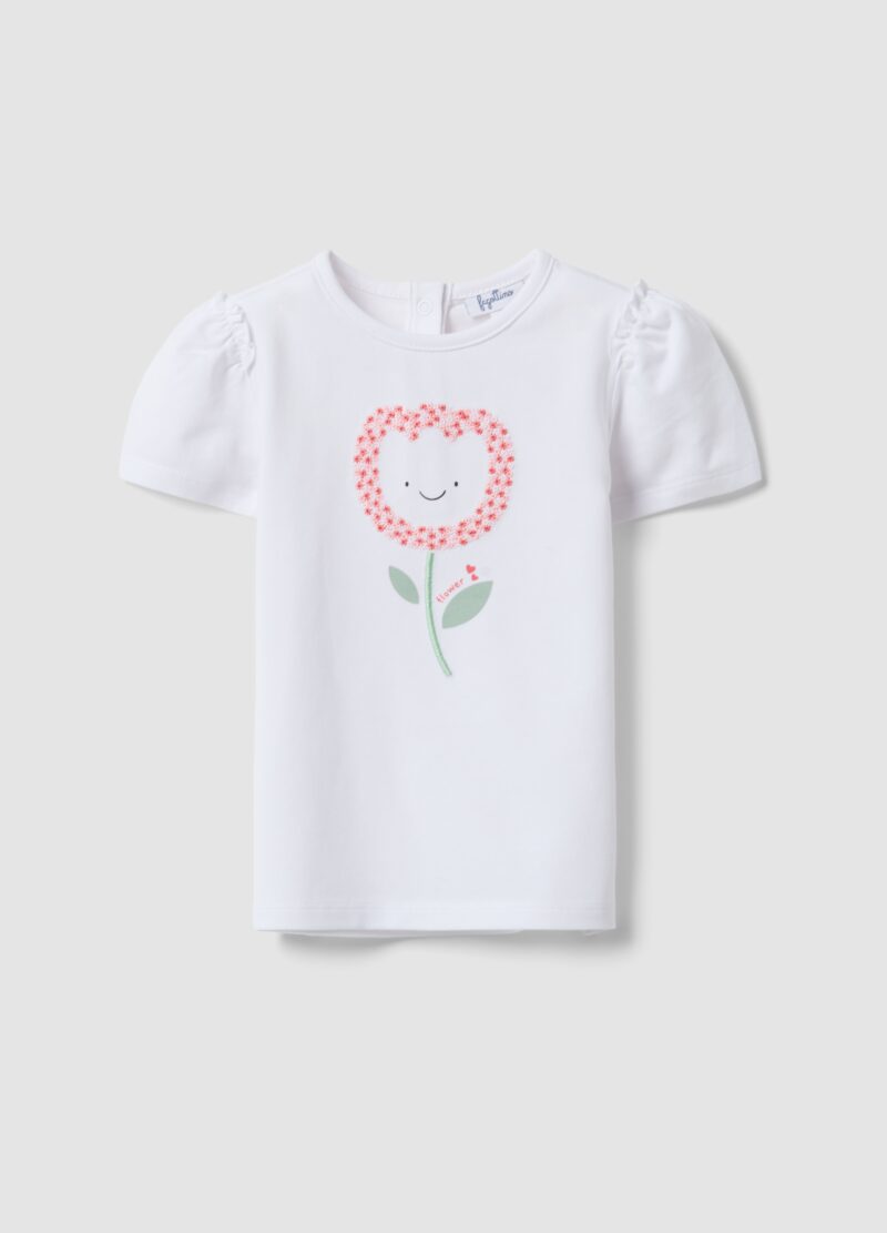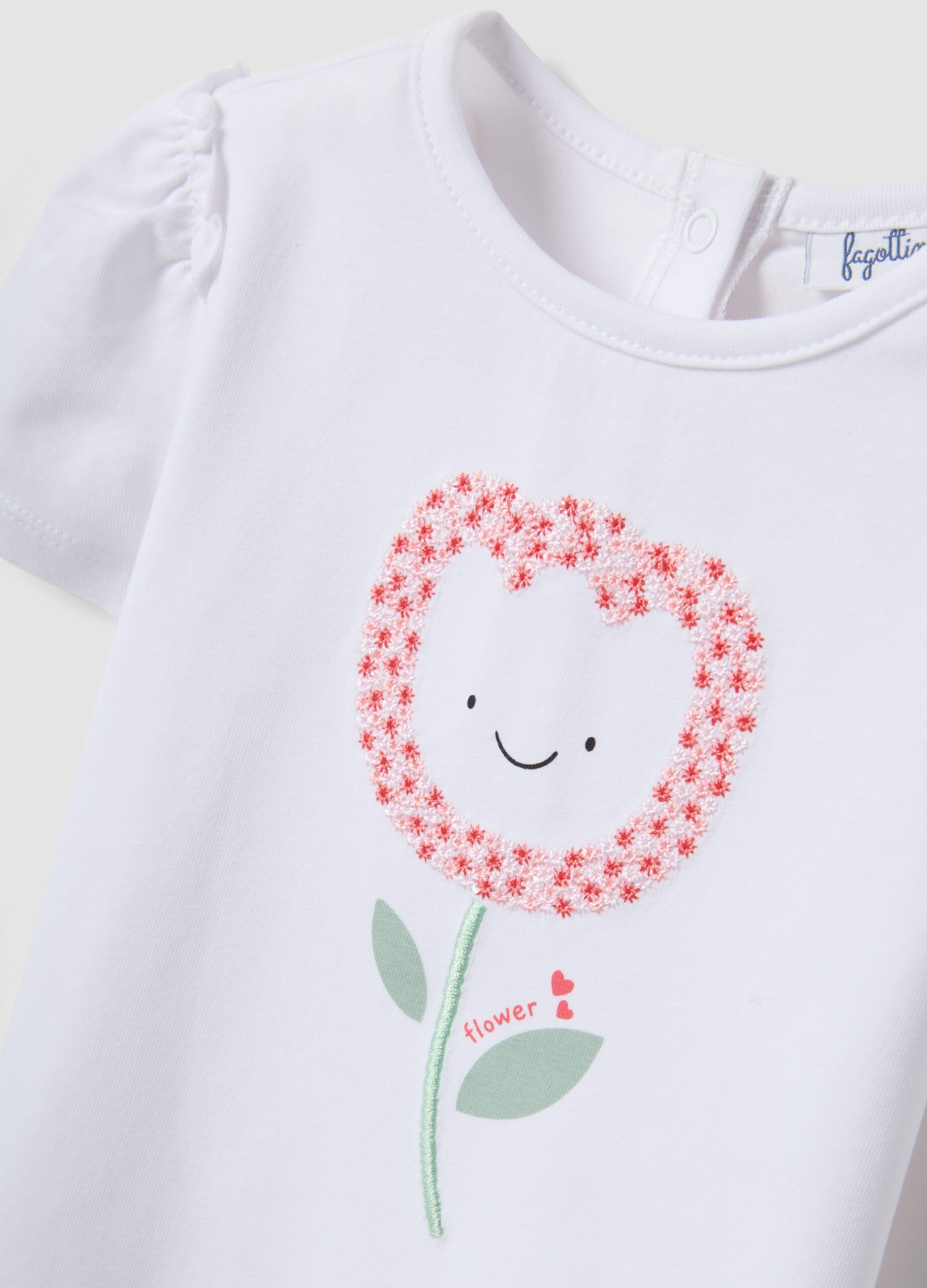 Ce t-shirt blanc de la gamme Fagottino est confectionné en coton extensible, assurant confort et douceur aux filles âgées de 9 à 36 mois. La broderie florale sur le devant ajoute une touche joyeuse au modèle. Doté de manches courtes et d’une encolure ronde, il offre une liberté de mouvement et un habillage facile. Un vêtement polyvalent adapté à toutes les occasions.