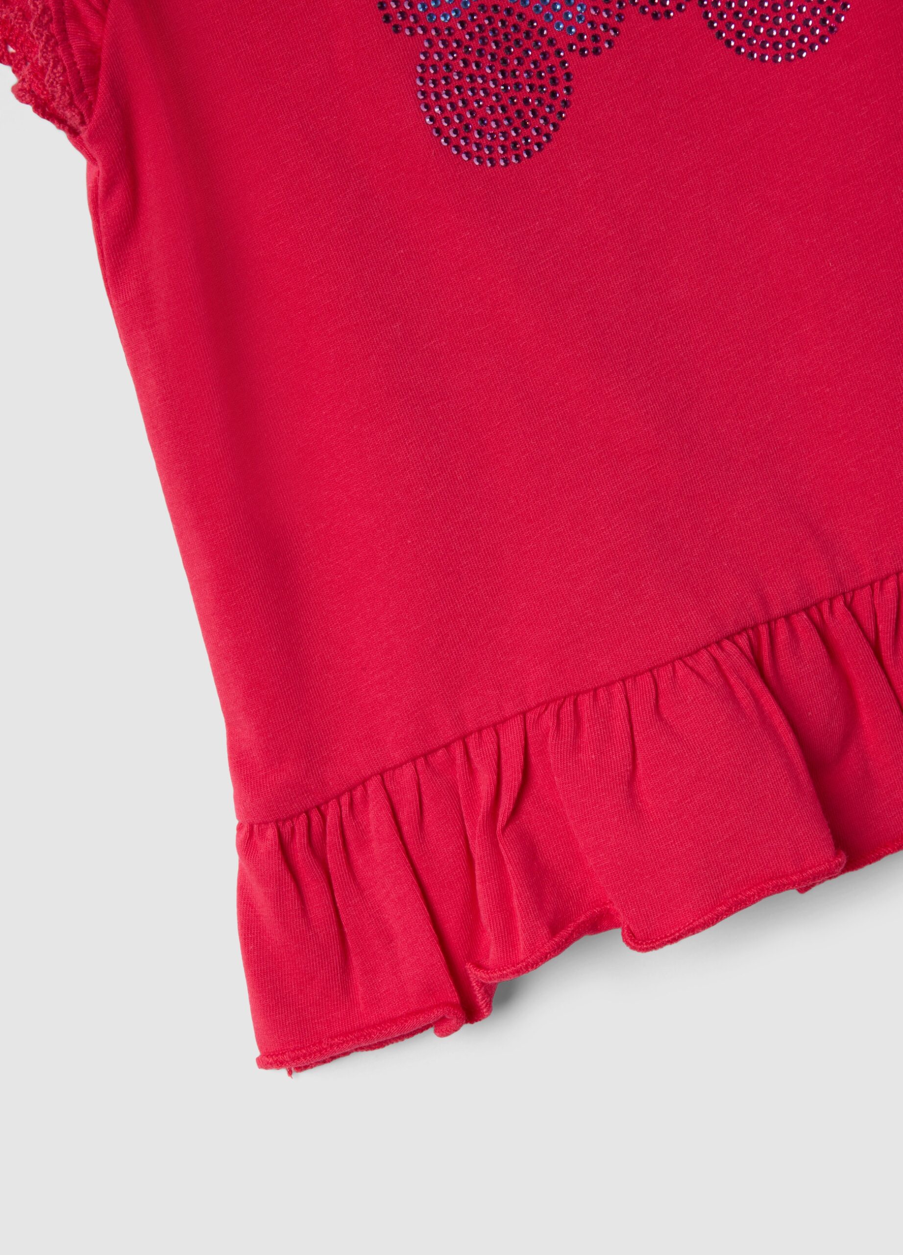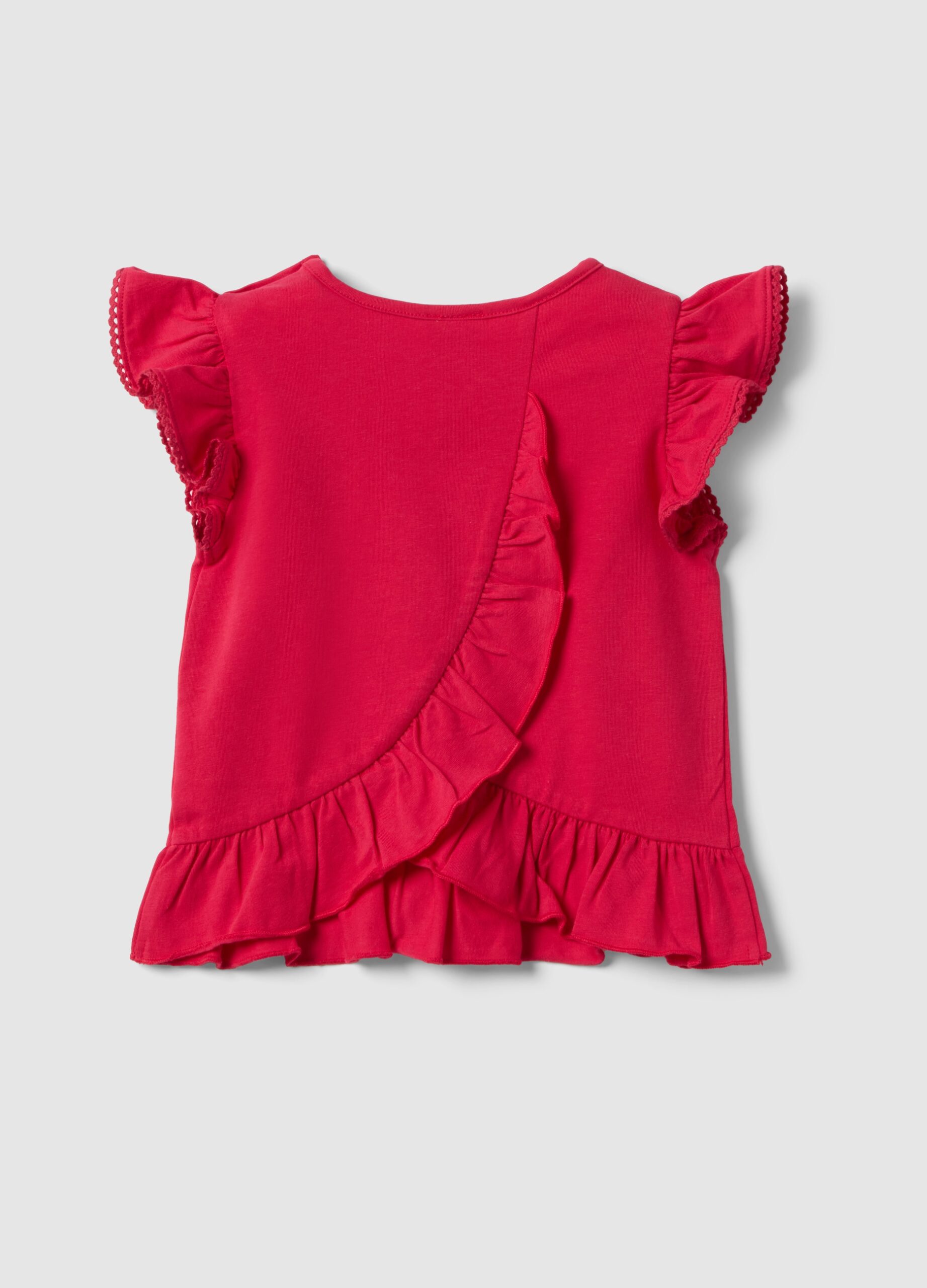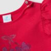Ce T-shirt rouge en coton stretch de la ligne Disney est parfait pour les filles âgées de 9 à 36 mois. Ce vêtement offre confort et douceur à la peau de votre tout-petit. Le design comprend un imprimé Minnie & Me en paillettes, des manches courtes à volants et un col rond, idéal pour l’été. Facile à porter, c’est un vêtement pratique et adorable, parfait en toute occasion.