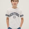 T-shirt garçon beige coupe classique en pur coton avec imprimé New York