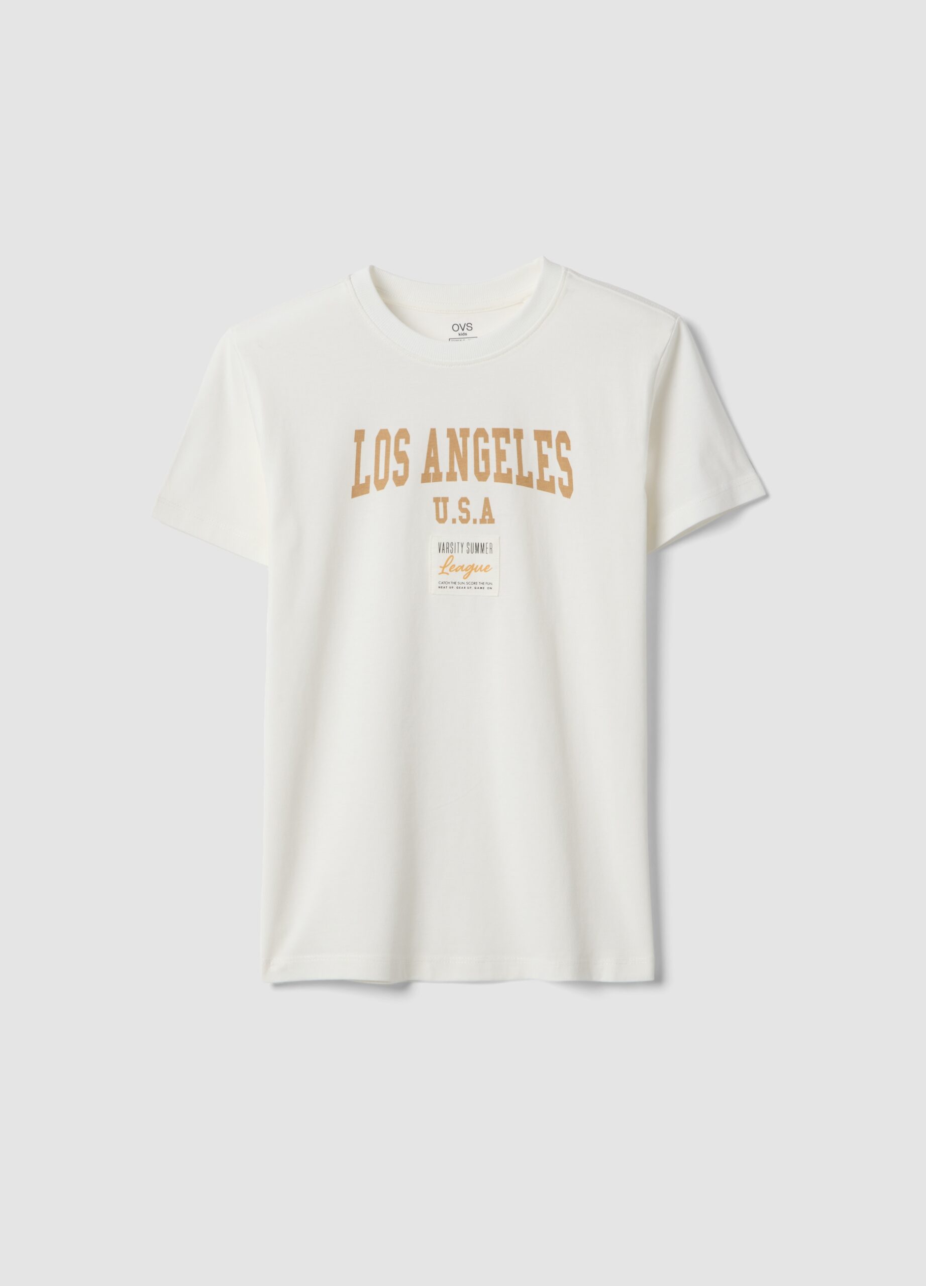 Le t-shirt blanc de la ligne OVS KIDS est confectionné en pur coton, idéal à porter au quotidien en été pour les garçons âgés de 10 à 15 ans. Le design moderne avec un imprimé inspiré de Los Angeles offre une coupe classique et un col rond. Le tissu doux assure confort et respirabilité, ce qui le rend parfait pour toutes les occasions.