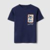 T-shirt garçon coupe classique en coton bleu imprimé palmiers