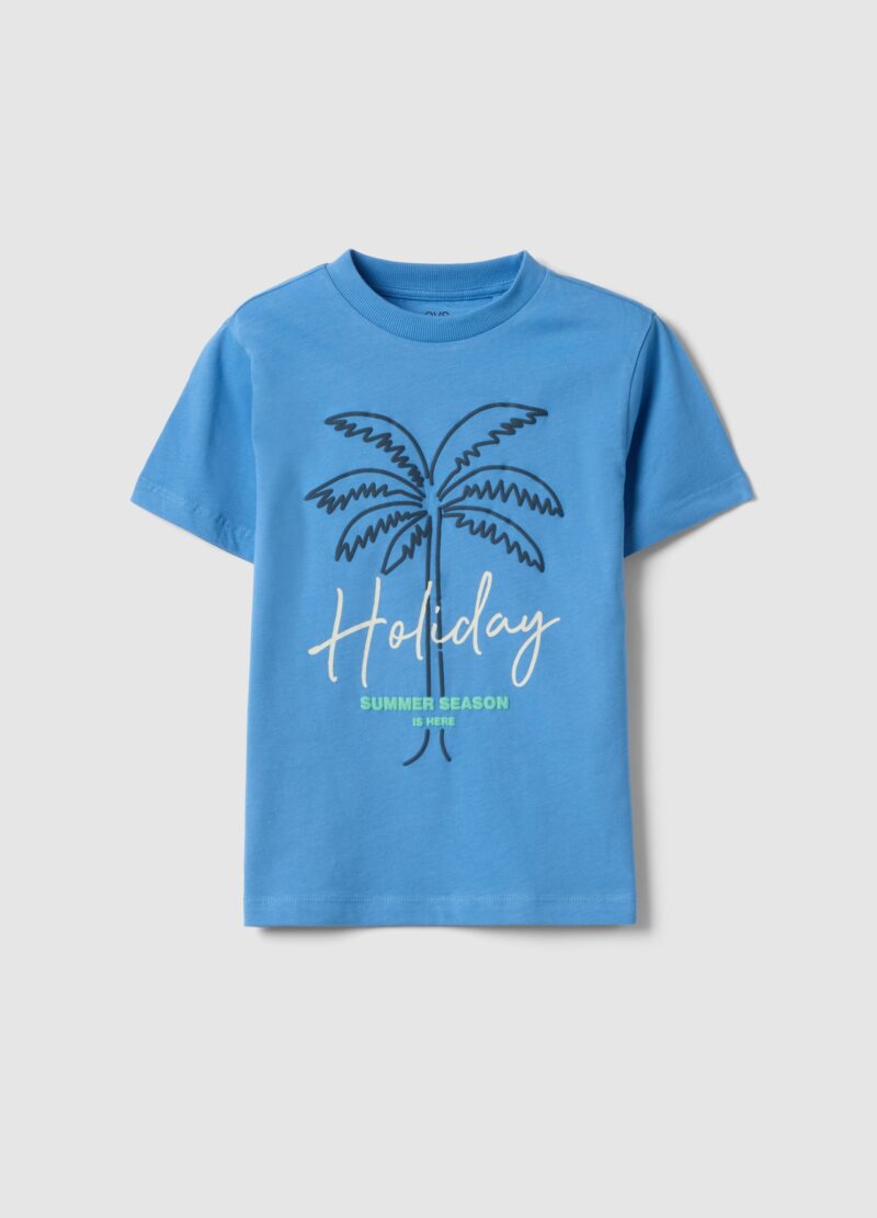 Le t-shirt bleu à manches courtes de la ligne OVS KIDS est idéal pour les enfants de 3 à 10 ans, parfait pour les journées d’été grâce à son tissu en pur coton biologique qui garantit confort et fraîcheur. Le design présente un imprimé de paume vibrant, ajoutant une touche moderne au vêtement. Avec un col rond et une coupe régulière, il assure un ajustement confortable, idéal pour les activités quotidiennes.