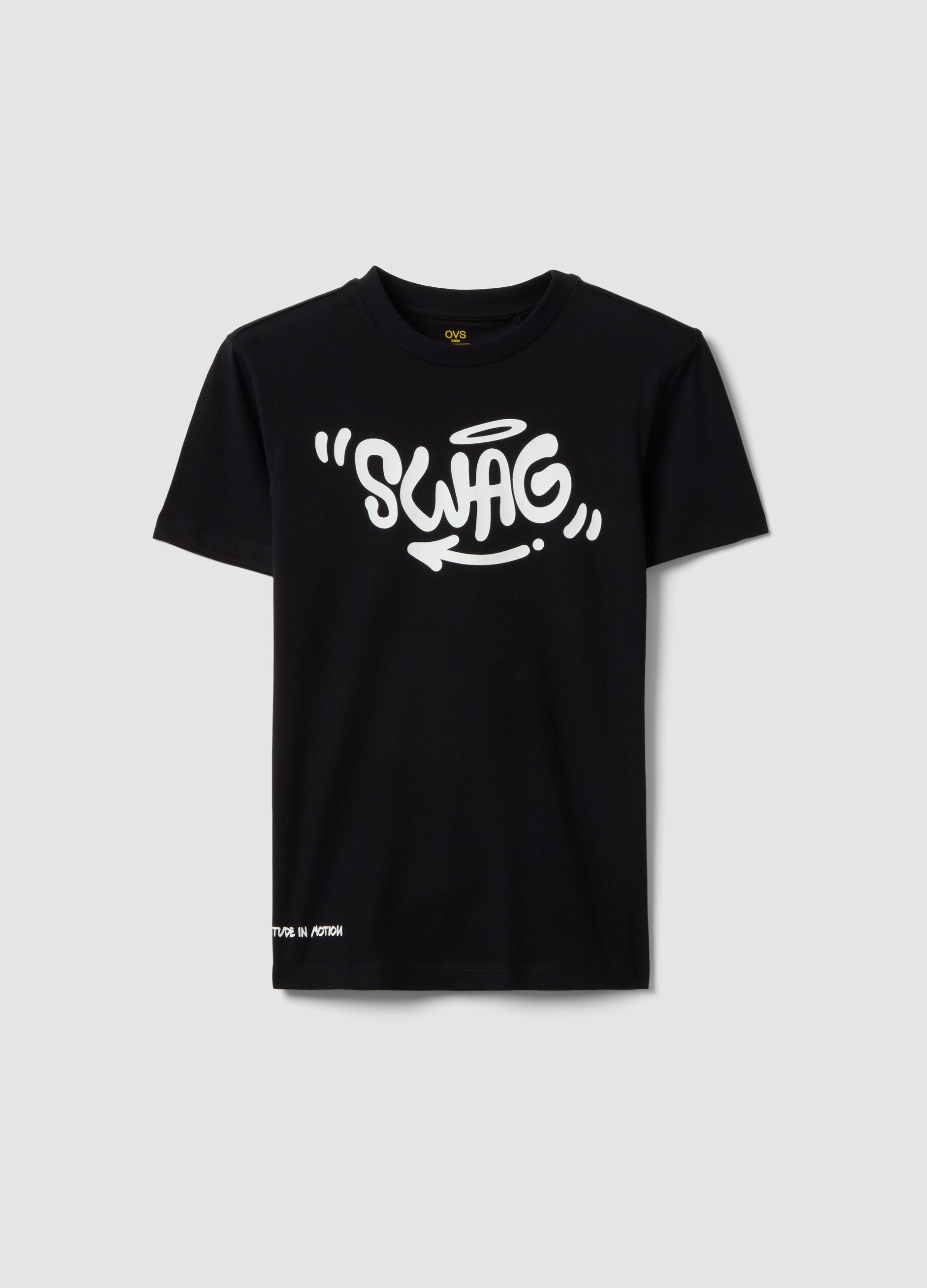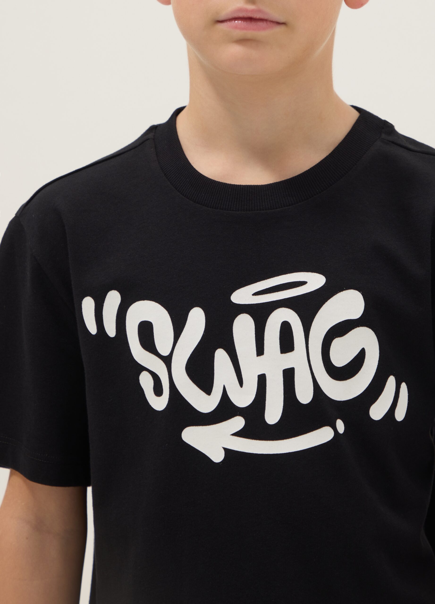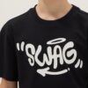 T-shirt garçon noir pur coton coupe classique imprimé Swag