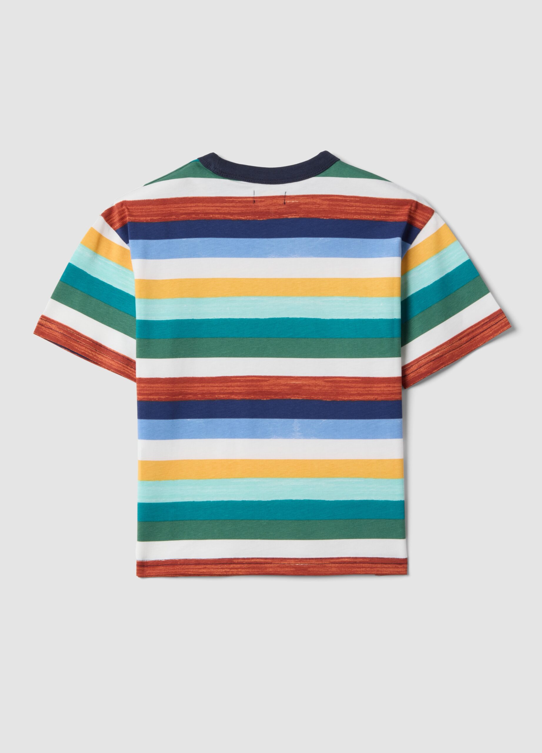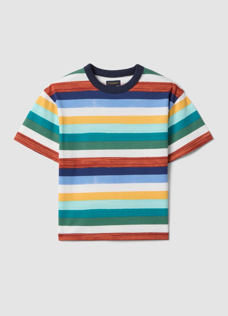 Le T-shirt à rayures multicolores de la ligne PIOMBO KIDS est idéal pour les enfants. Fabriqué en pur coton, il offre confort et respirabilité en toute occasion. Doté d’une encolure ronde et de manches courtes, il assure une coupe classique, permettant une liberté de mouvement pendant le jeu. Ses couleurs vibrantes le rendent parfait pour le printemps et l’été, ce qui en fait un incontournable de la garde-robe estivale.