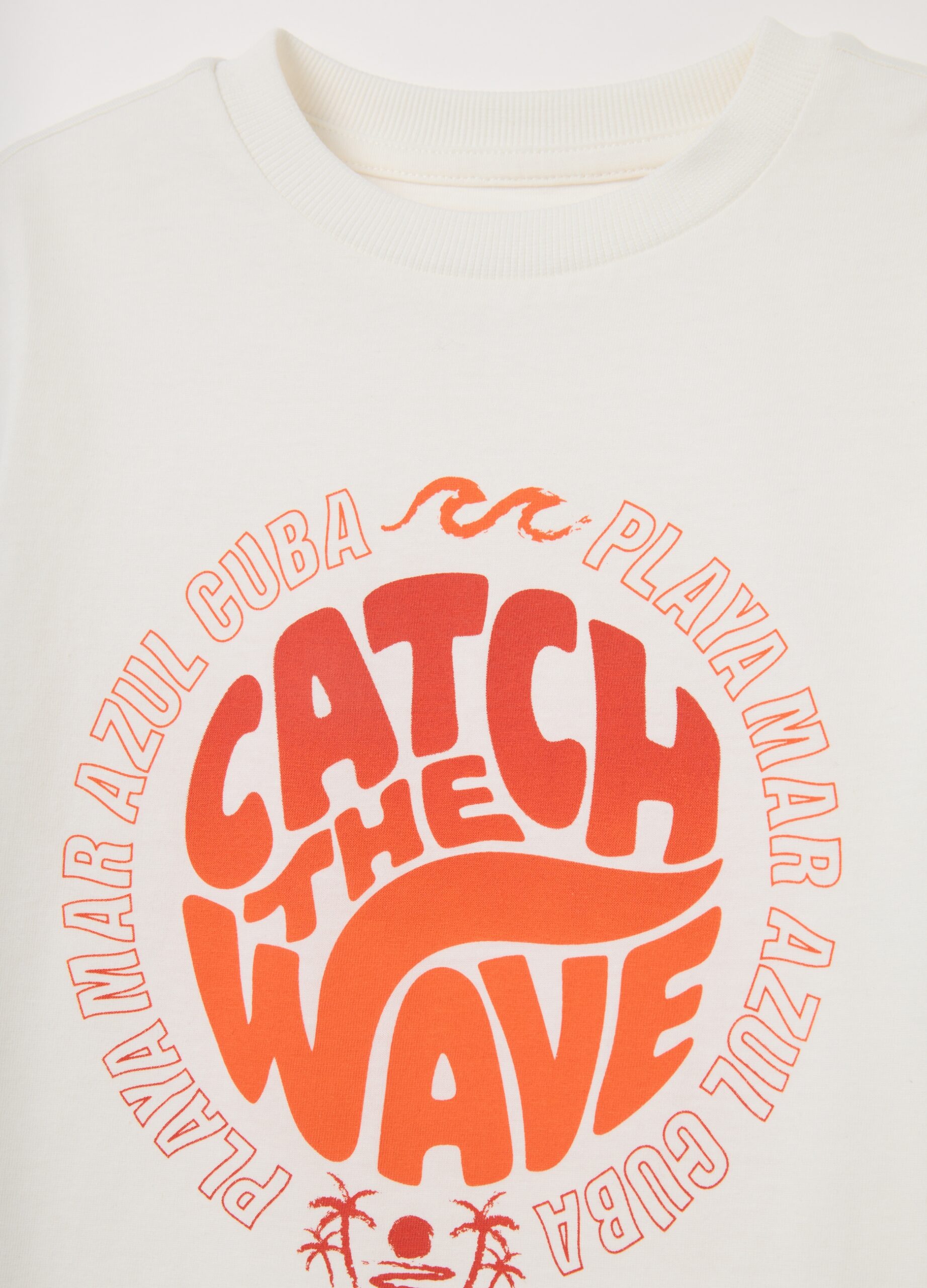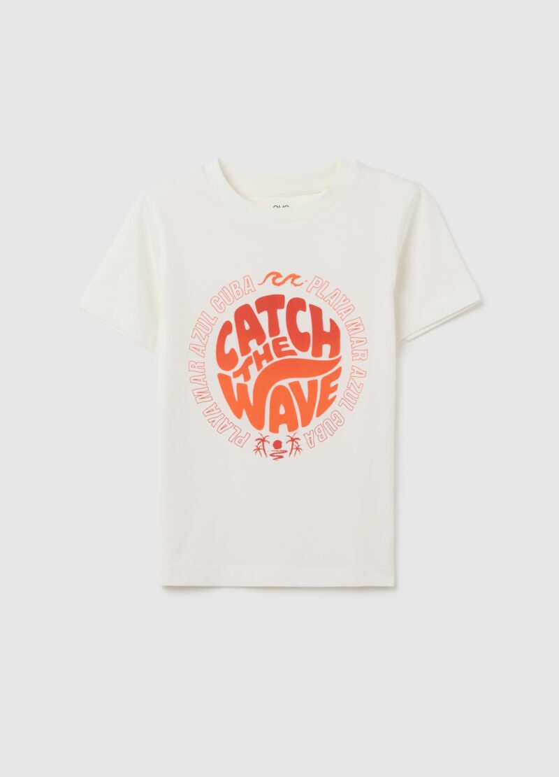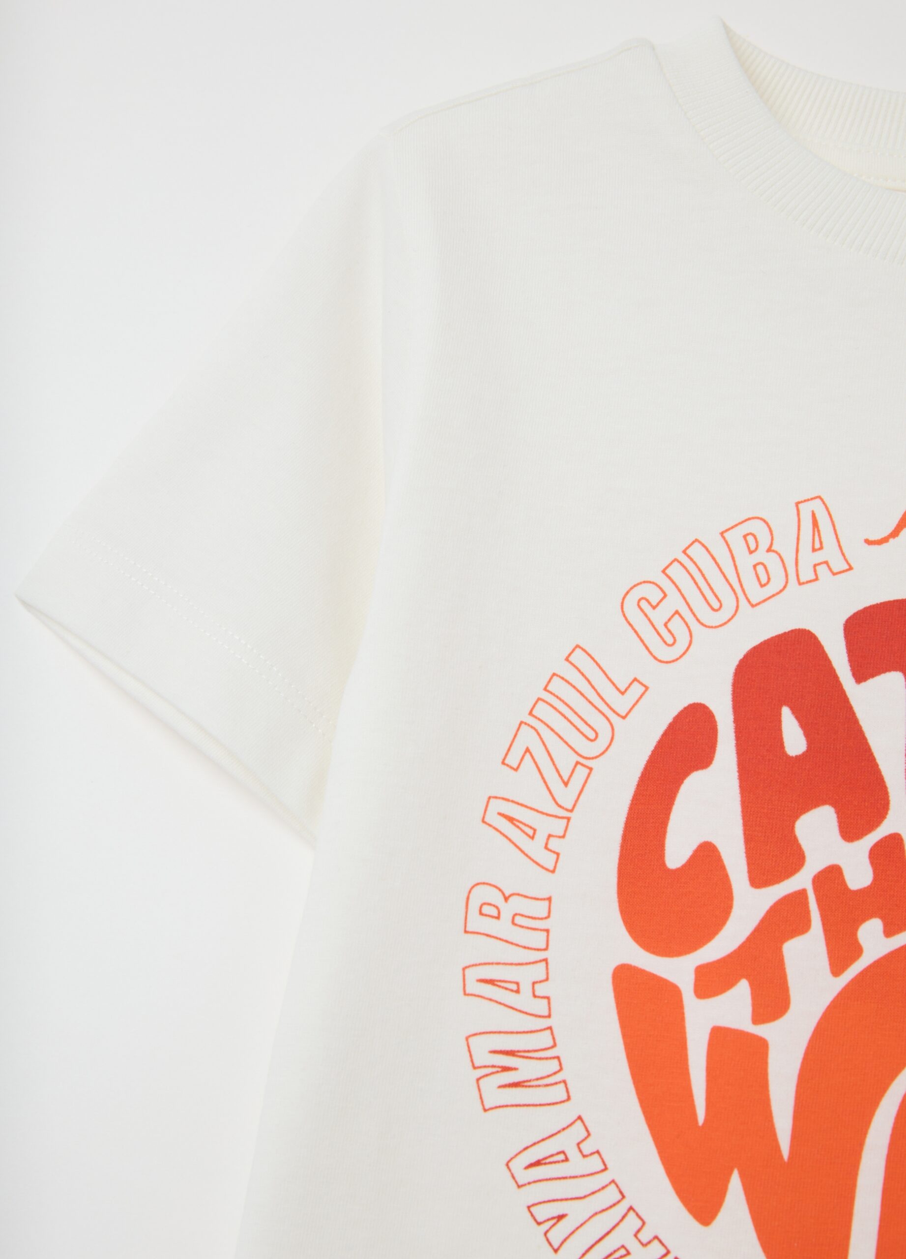 Ce t-shirt blanc de la ligne OVS Kids est conçu pour les enfants de 3 à 10 ans et est fabriqué à partir de coton pur. Avec un logo orange vivant et des accents tropicaux, il est parfait pour ajouter une touche de style à la collection printemps / été. Avec un ajustement régulier et un décolleté rond, il offre du confort pendant les journées chaudes. Une pièce polyvalente qui ne devrait pas être absente de la garde-robe d’été des petits, idéale pour toute occasion.