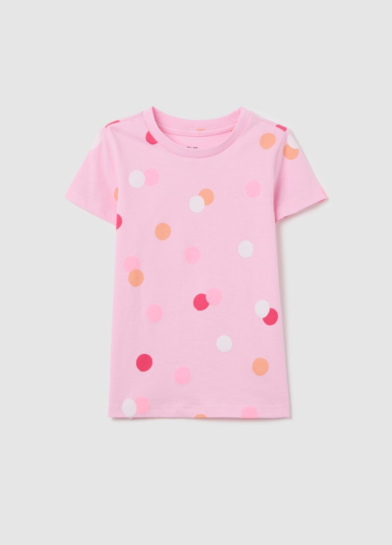 T-shirt 100% coton à manches courtes. Nou rond. Impression à pois.