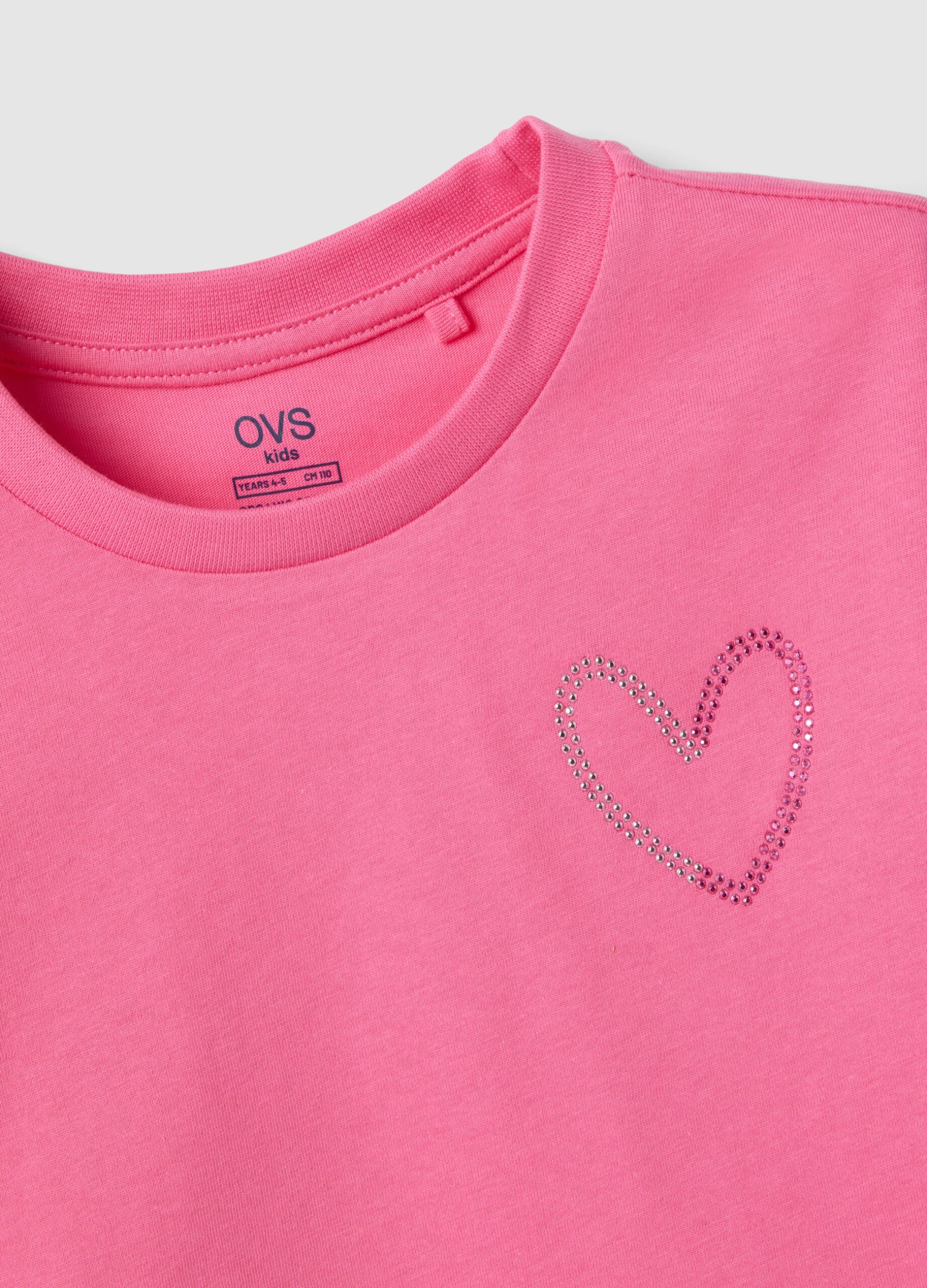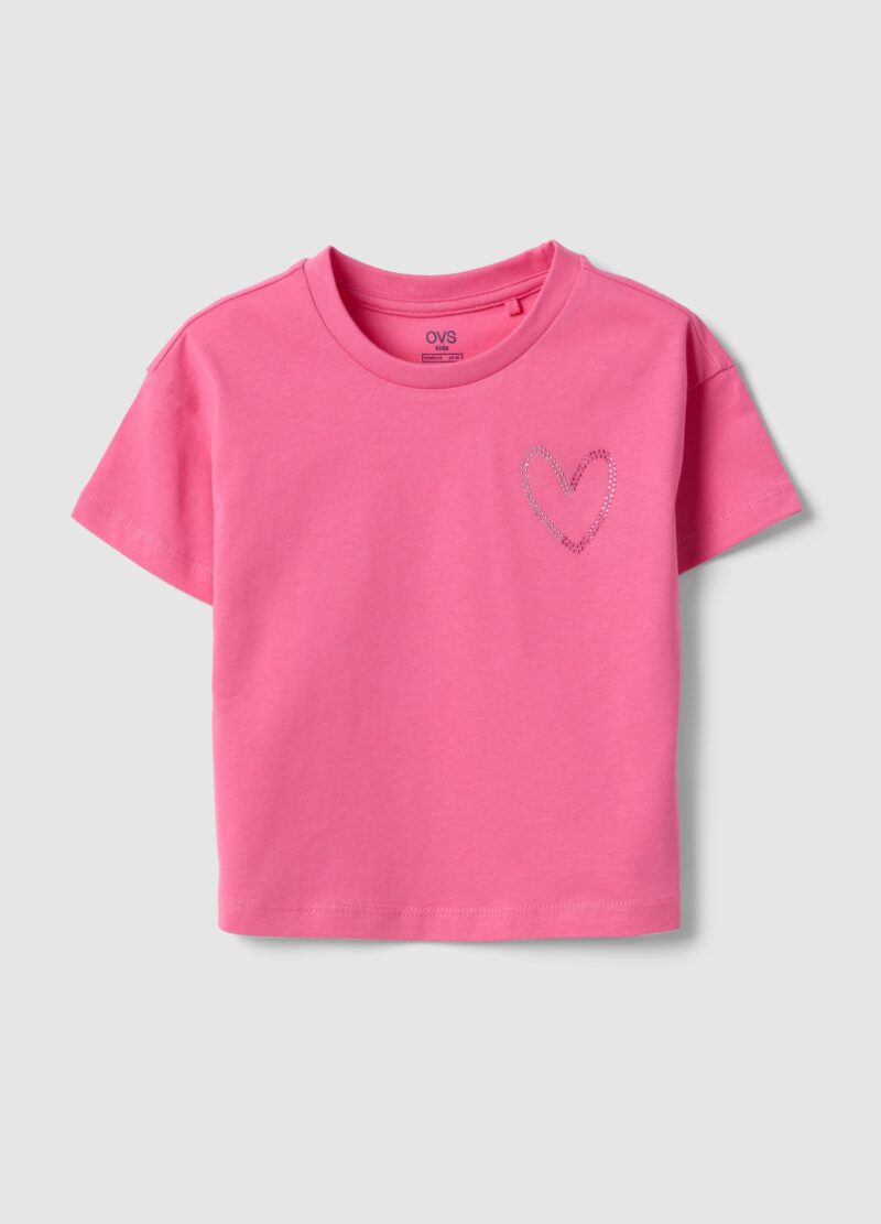 Tee-shirt fille rose pur coton boxy avec coeur