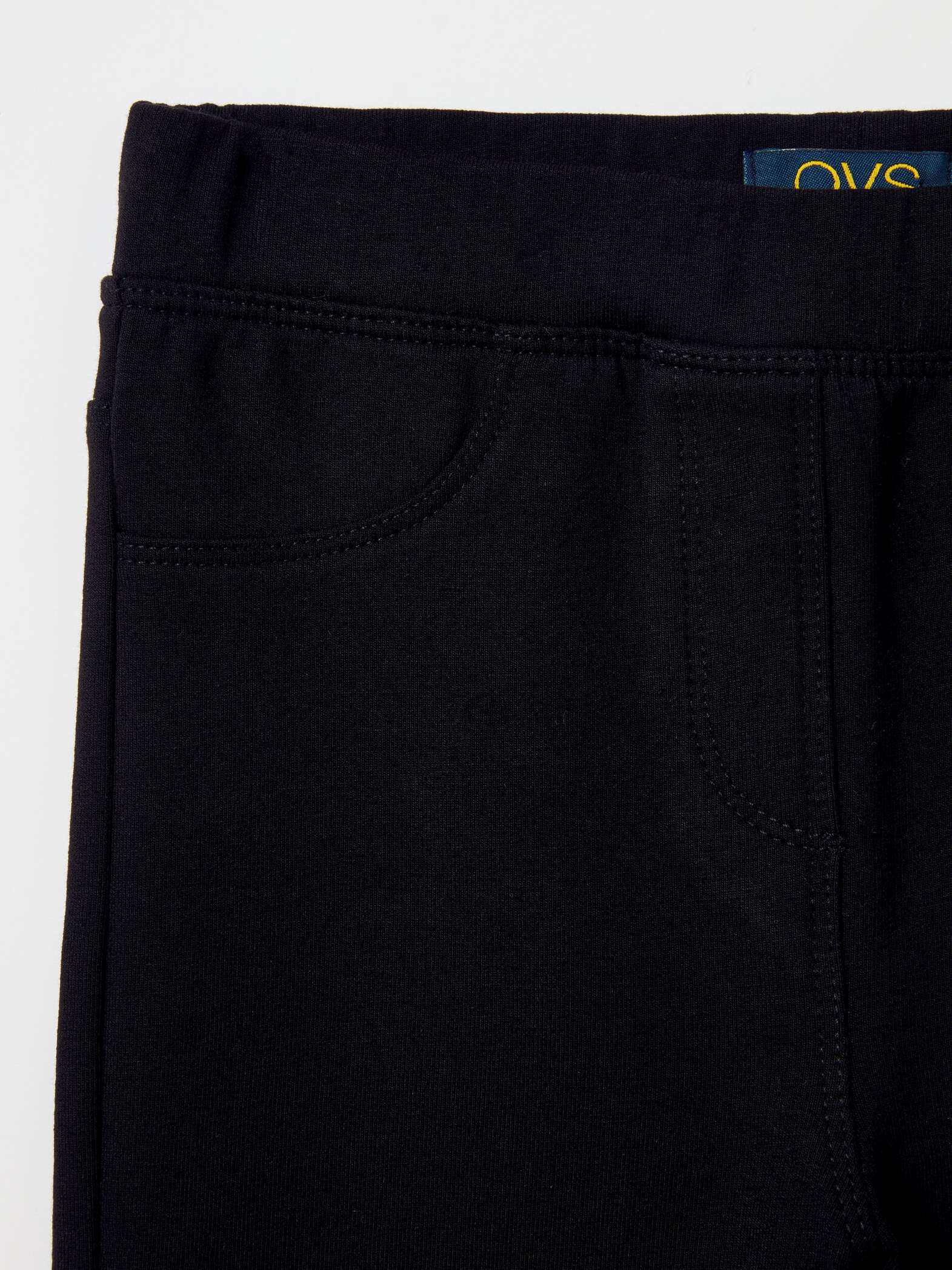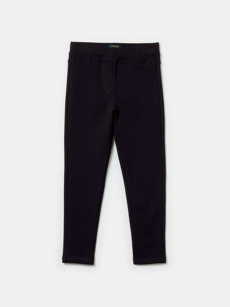 Tregging uni en coton biologique extensible. Taille élastiquée. Fausses poches sur le devant.