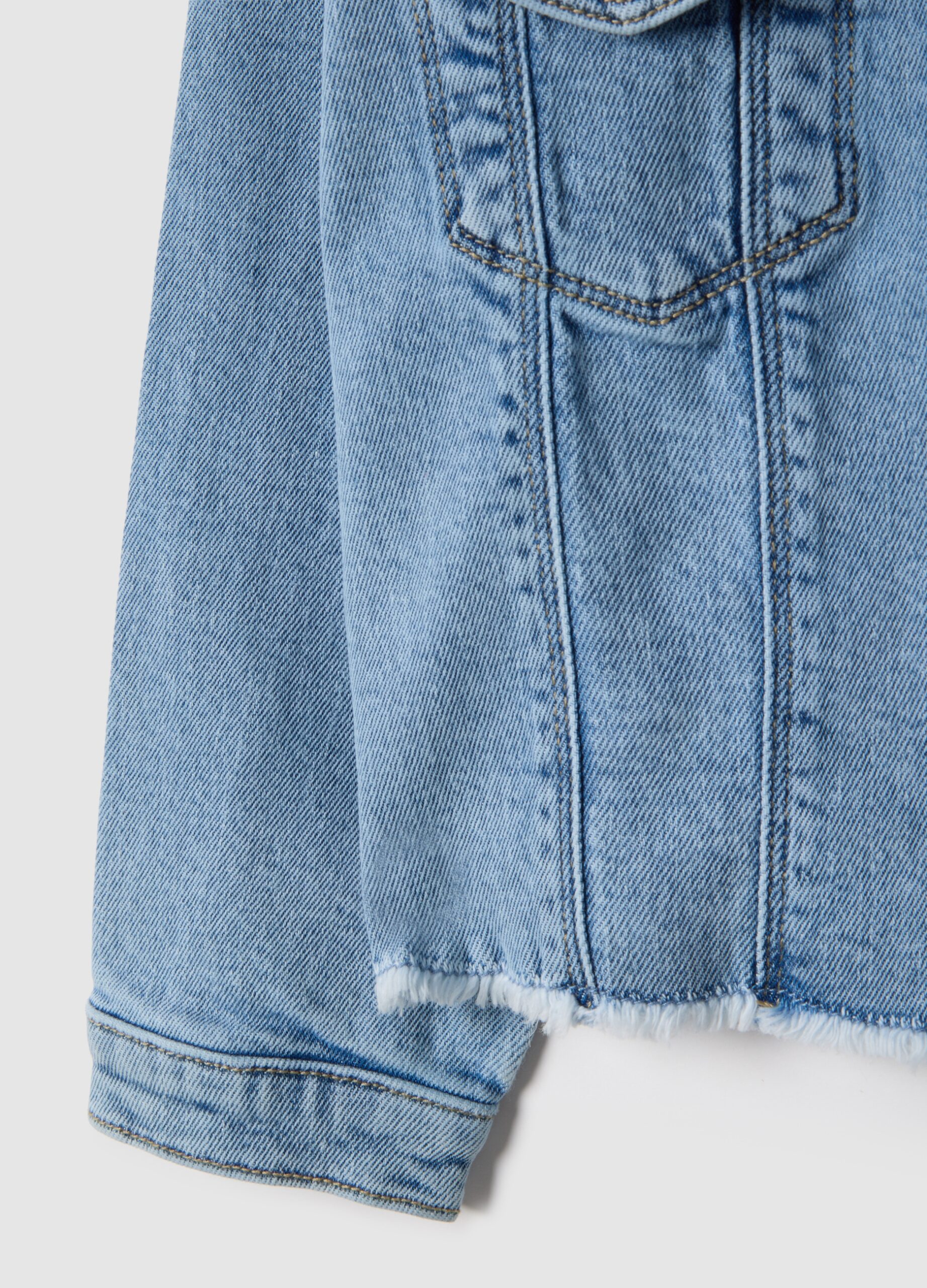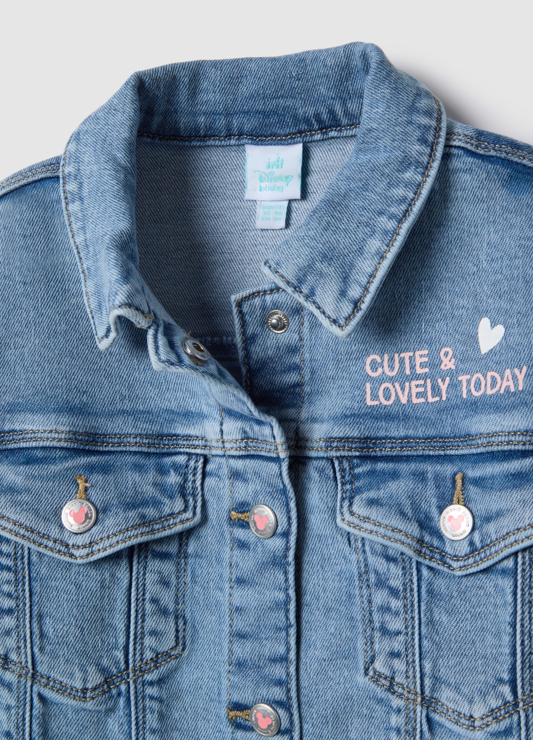Cette veste en coton denim bleu pour fille de 9 à 36 mois, de la ligne OVS KIDS, présente un imprimé Minnie Mouse au dos. Confectionné en coton stretch, il offre confort et liberté de mouvement pour les journées actives. La fermeture boutonnée et les poches pratiques en font une pièce polyvalente, parfaite pour accompagner les plus petits, alliant praticité et style.